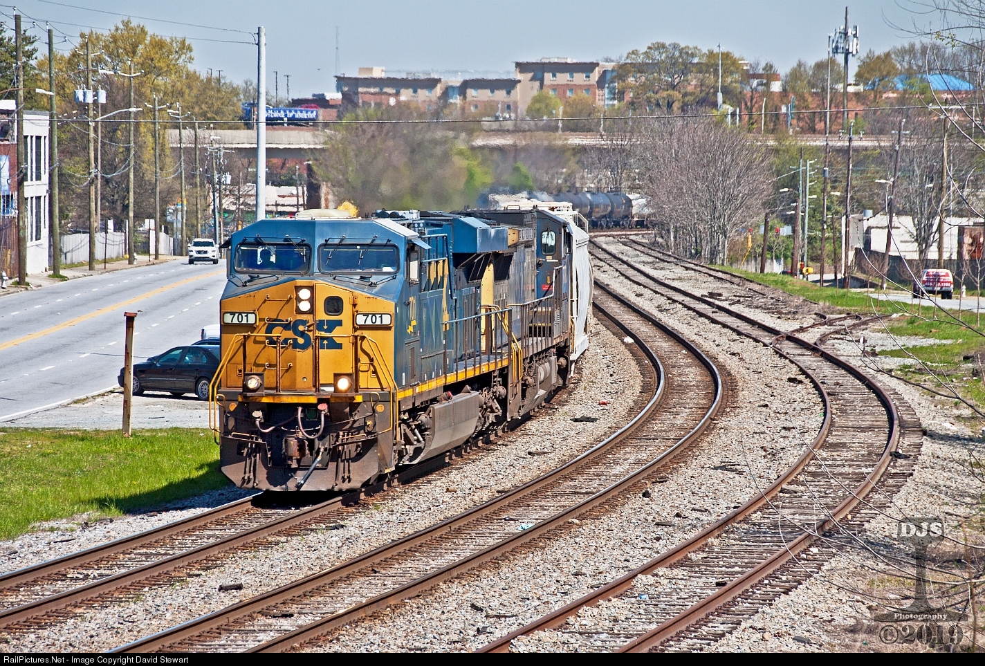 | CSX Q541 steps over joint owned trackage between NS and CSX in the West End District of Atlanta, Georgia on March 28, 2019. |