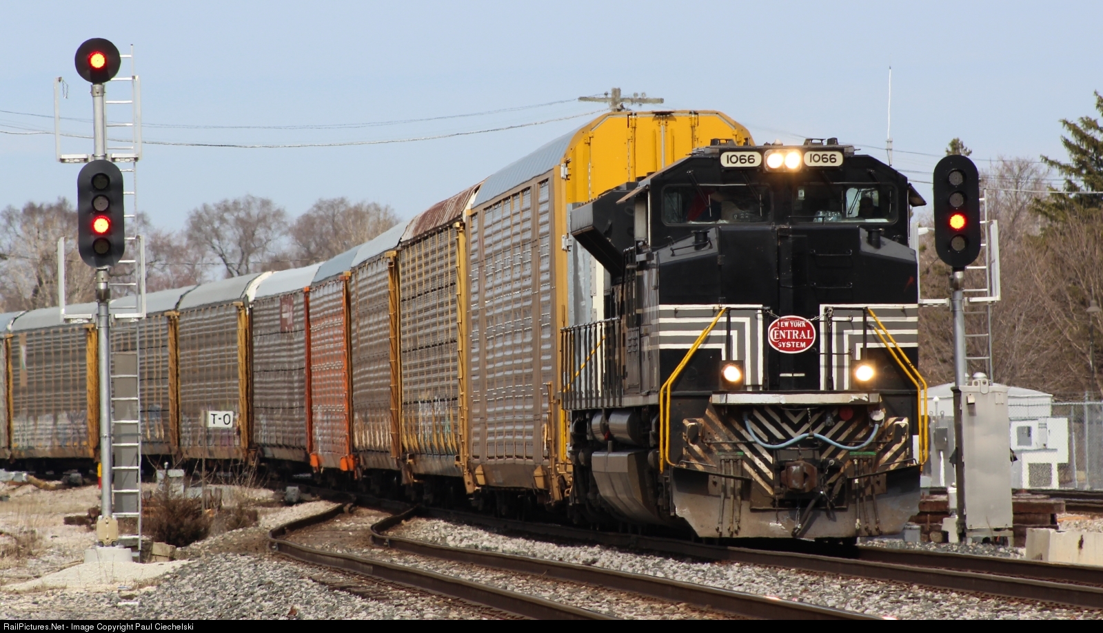 | NS 1066 leads CP 2-286 past Tower A-20, with over 9,000 ft. of autoracks behind it! |