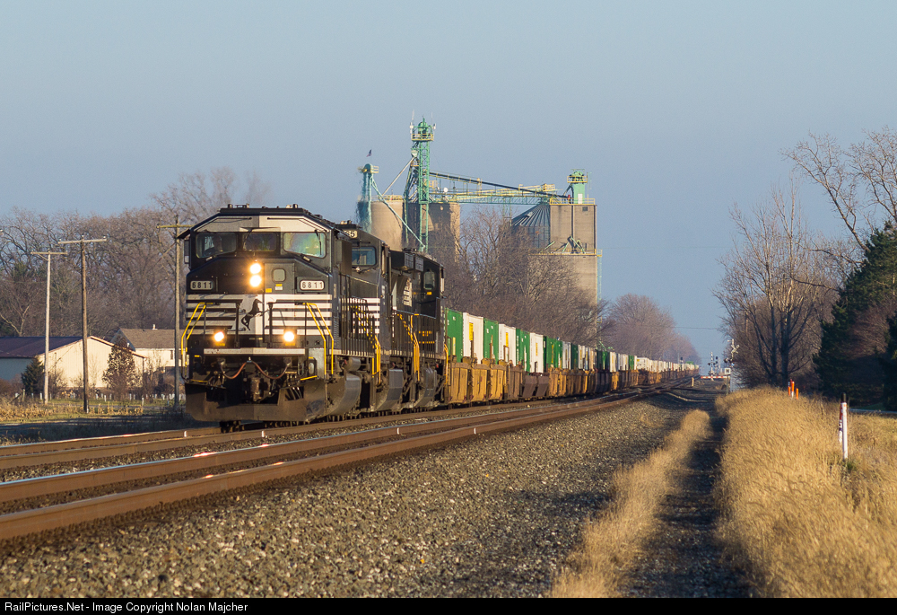 NS 6811 leads van train No. 23K west on the Chicago Line through Elliston, Ohio with a crew, short on time, trying to make it to Toledo. Norfolk Southern recently announced the sale of a pretty good portion of their "cooler" power, including NS 6811 and the eight other former BN SD60M's on the roster.