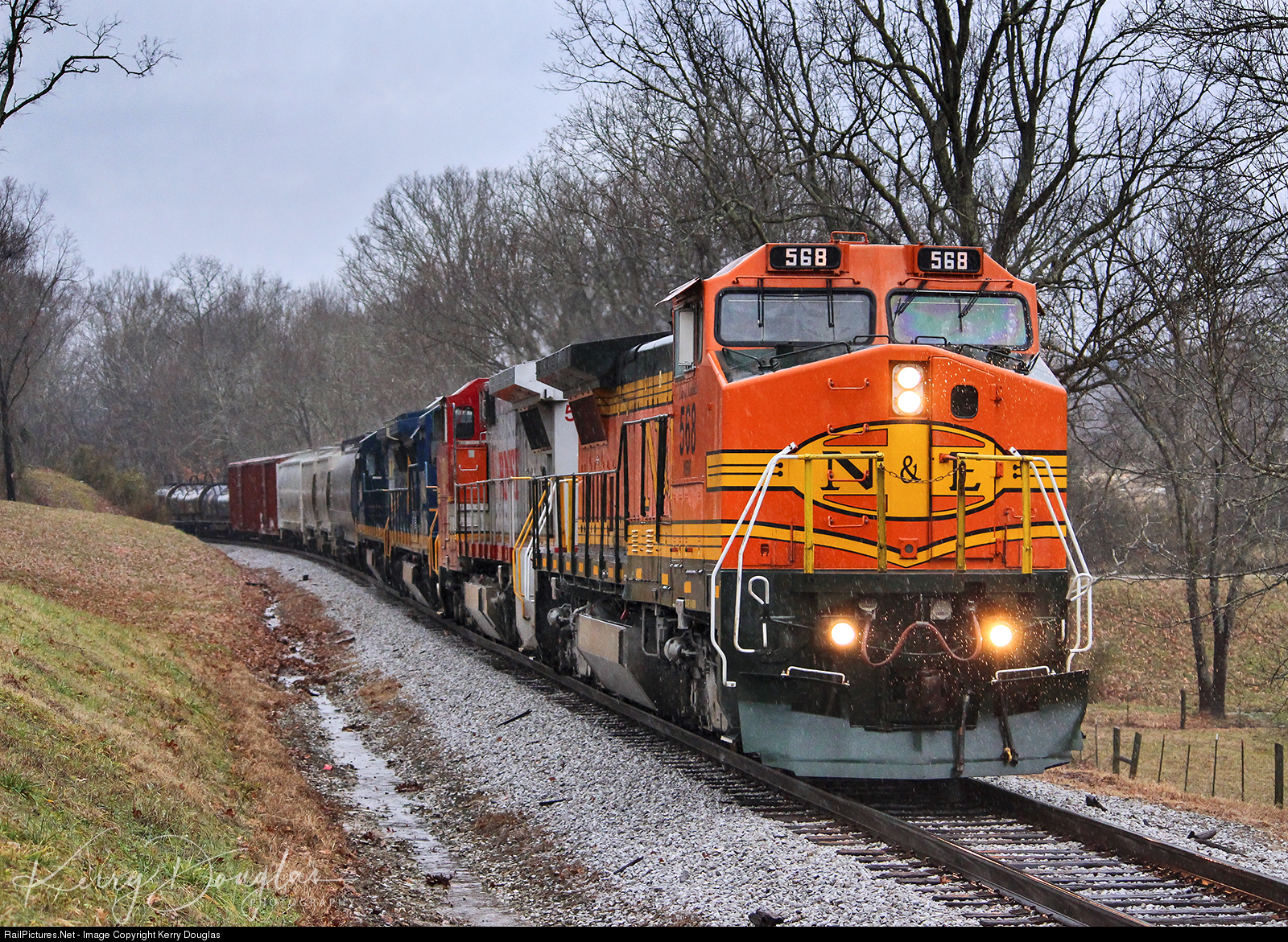 Rain begins to fall on the very last day of 2018, as the very last Nashville & Eastern schedule freight works it's way through Horn Springs, heading east for Lebanon, TN. As the crews day draw to a close so does a chapter of 32 years of the Nashville & Eastern Railway Corp. This railroad is a fine example of what was a poor dunk 110 mile long operation that was invested, and was drastically turn around into a successful piece of railroad, thrumping its most controversial past in Tennessee History. As of November 2018 the Nicholasville, Ky base company RJ Corman had announce the finalization of an agreement to acquire the Nashville & Eastern Railroad Corp, Nashville & Western Railroad Corp, Transit Solutions Group-Nashville Star, and Transit Solutions Group. As of Jan 1, 2019 The Nashville & Eastern and all of it's subsidiary will fall under the RJ Corman umbrella. Photo from the C. Bamberg Collection.