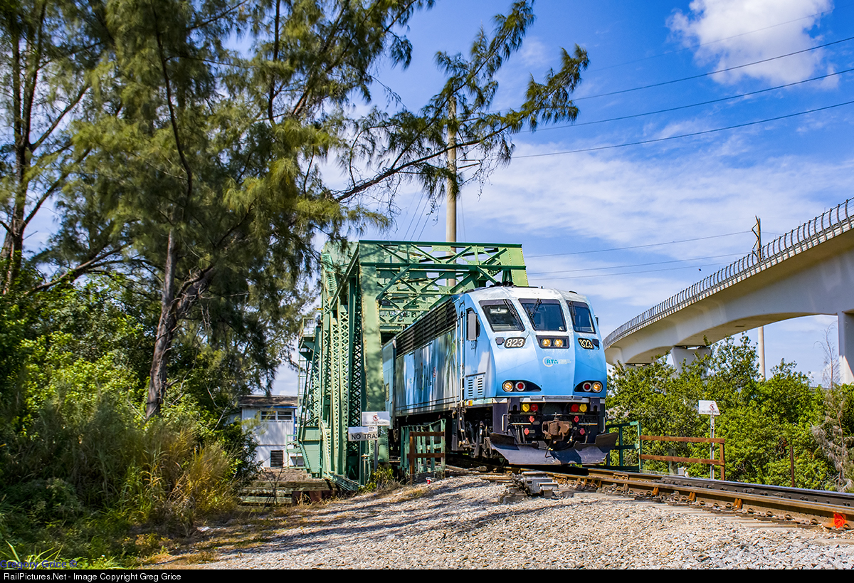 Tri-Rail BL36PH 823 leads a southbound train over the Miami River Drawbridge as it approaches it's final stop, Miami Airport Station. |