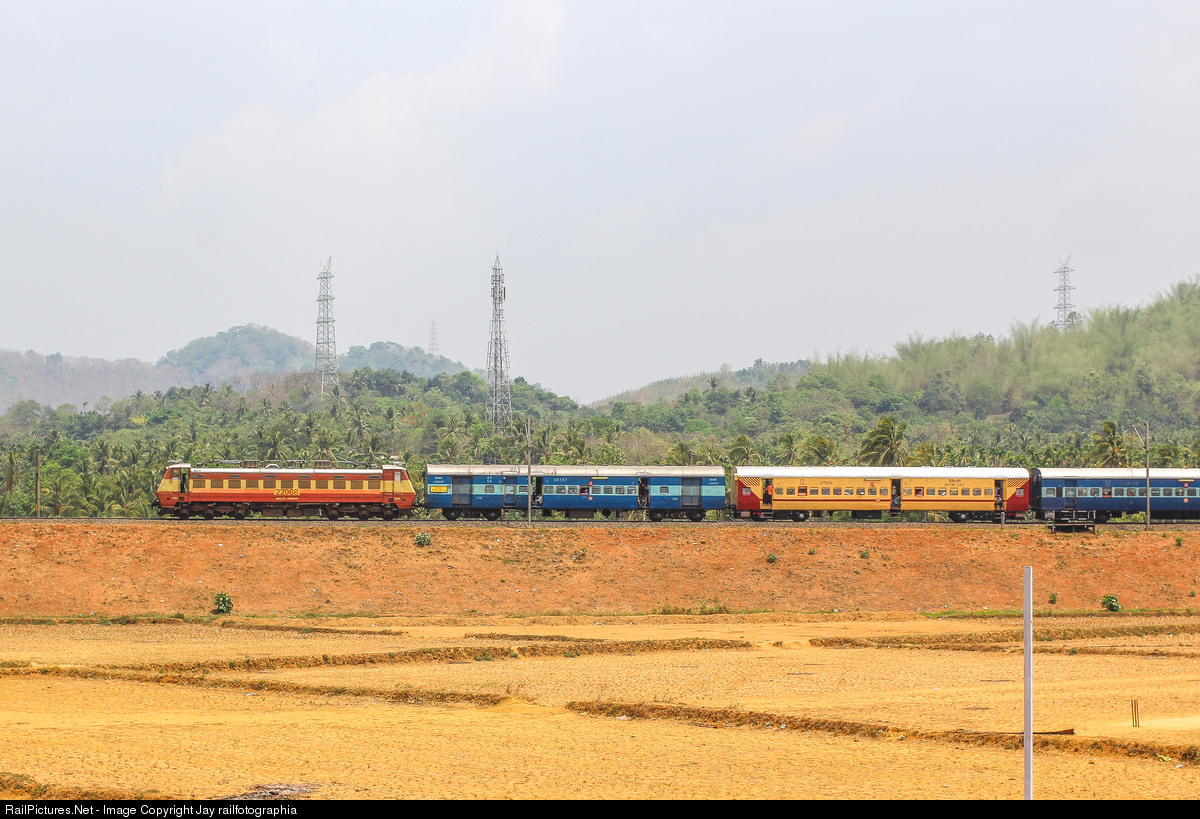 Colorful Utkrisht carriage was looking odd in the blue carriage consist of Palaruvi Express powered by ARAKKONAM WAP-1