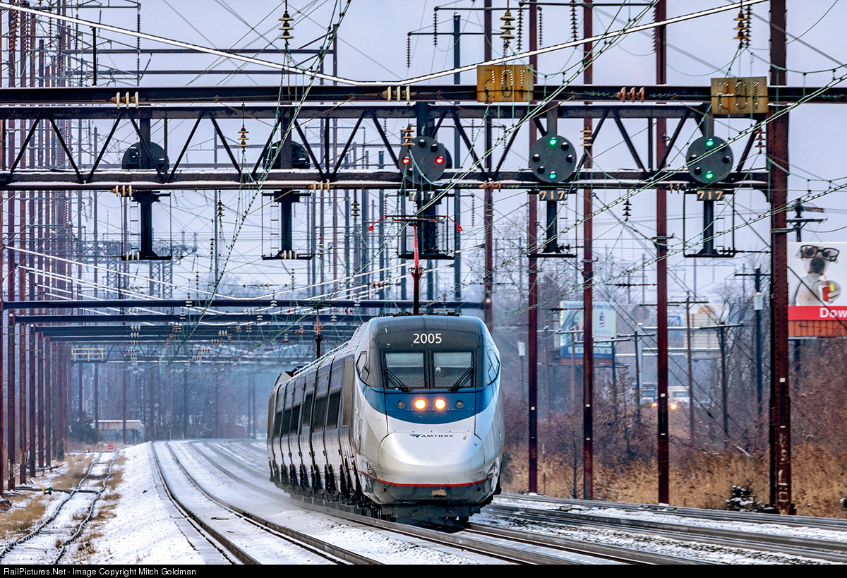 Dog in a Zoom Pan - or; Dog on a Billboard. Either way, the Acela is the actual focal point of the shot, all else somewhat blurry, no doubt due to the fact that dogs don't wear glasses... Amtrak No. 2005 leads north through Bensalem, PA, in a "zoom-pan" captured at a lazy 1/30th of a second The speed as noted above the functional ex-PRR signal bridge is limited to 105 through here, just south of Eddington.