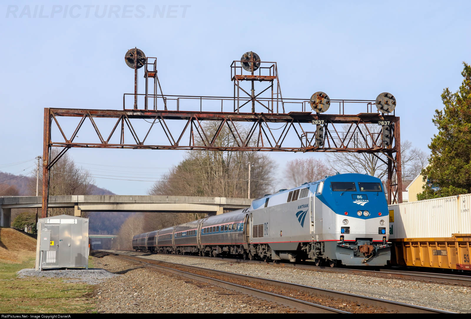 Amtrak #86 leads 04T eastbound through the Summerhill intermediate signal on the Pittsburgh line on a beautiful spring morning.