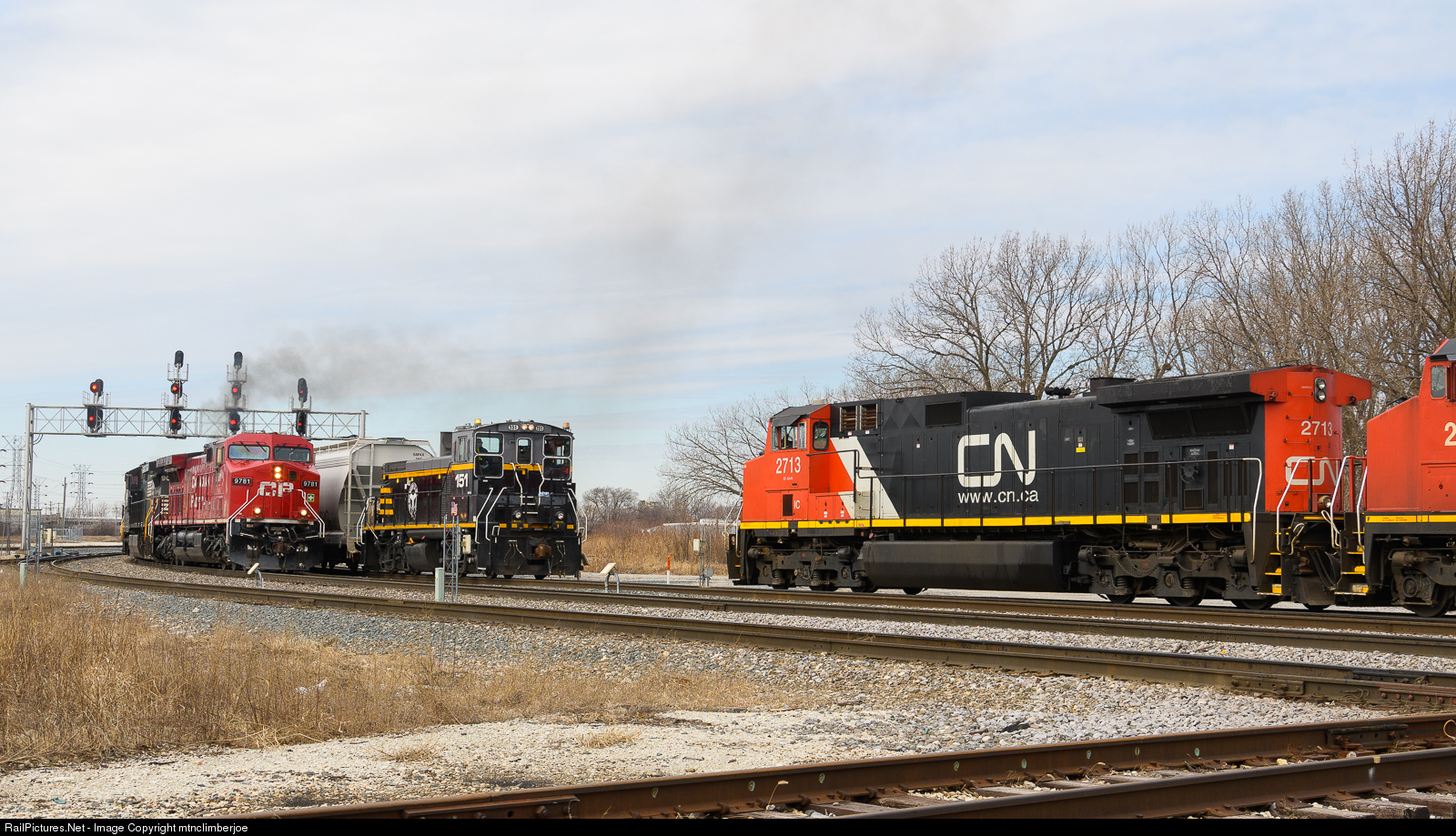 A CP manifest freight, BRC local switcher, and CN ethanol train have a three way meet at Hayford Junction, just east of the Belt Railway of Chicago's Clearing Yard.