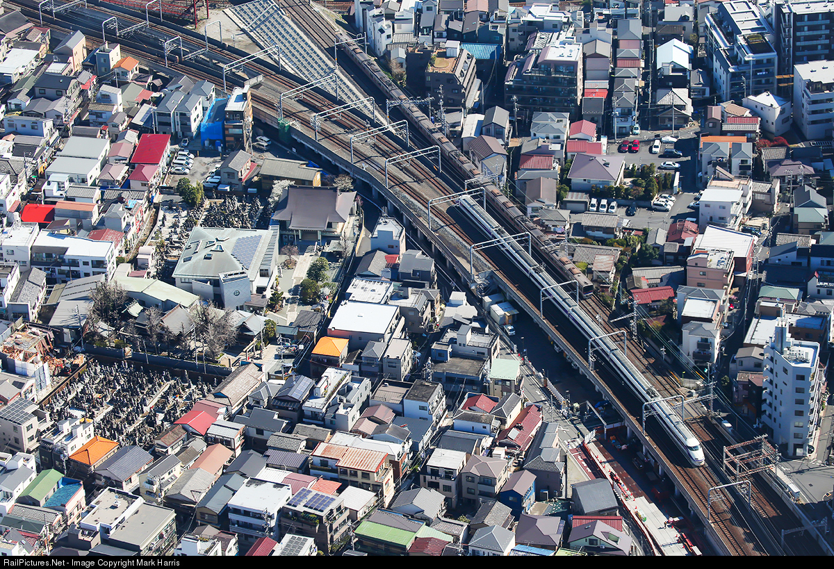 Looking down from the Tokyo Sky Tree on the Tobu Isesaki line and Keisei Oshiagne Line.