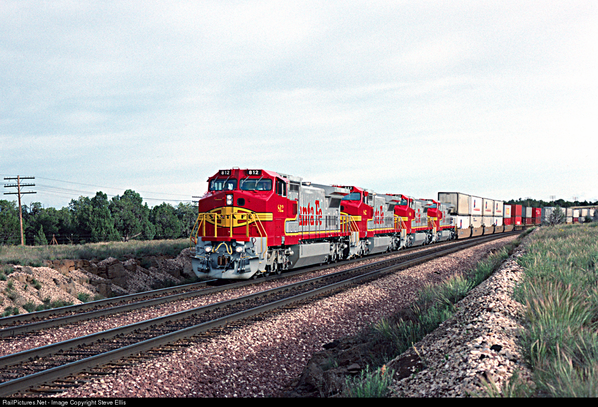 They will never look like this again. In what might possibly be their first revenue trip west C40-8W's 814, 842, 848, 844 are running elephant style, looking pristine. I'm not sure for the reason but the 800's were delivered in even and odd numbers separably. When we went down to Arizona for this trip we were really hoping to see some Santa Fe brand new 800 C truck GE's. When we got this train, at the very end of the day we were very ecstatic.