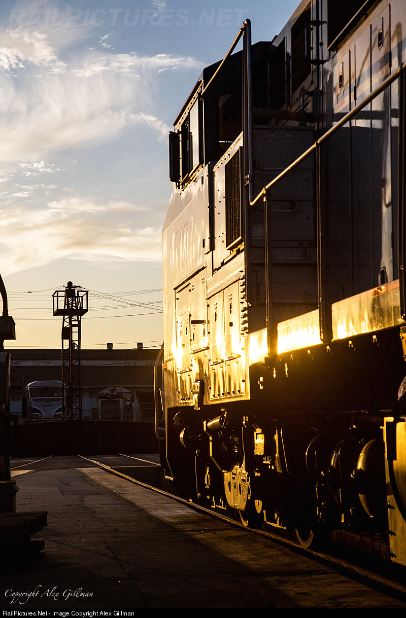 | The sun closes in on the horizon to bring another warm, summer day in Los Angeles to a close as AMTK 507 catches some rays adjacent to the Redondo turntable. Across the pit, an endangered F59PHi lives out its final days in Southern California before being sent east to work under new ownership, Metra. |