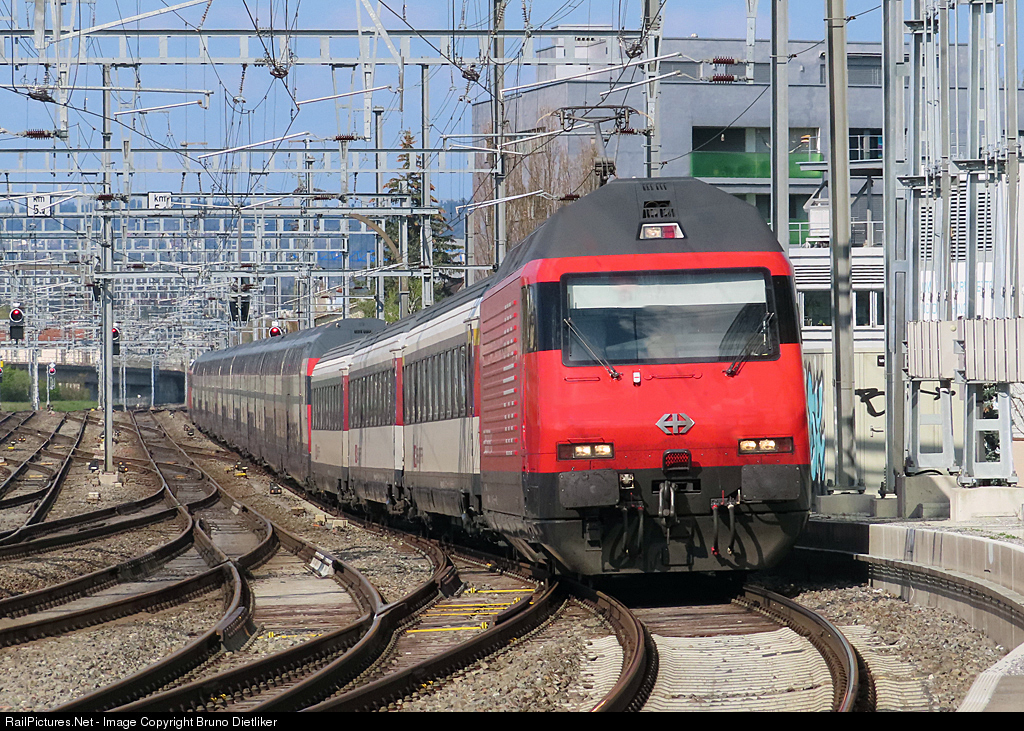 | Double deck Intercity from Romanshorn toward Zürich - Brig in the station Oerlikon. Behind the loc are three supplement cars. |