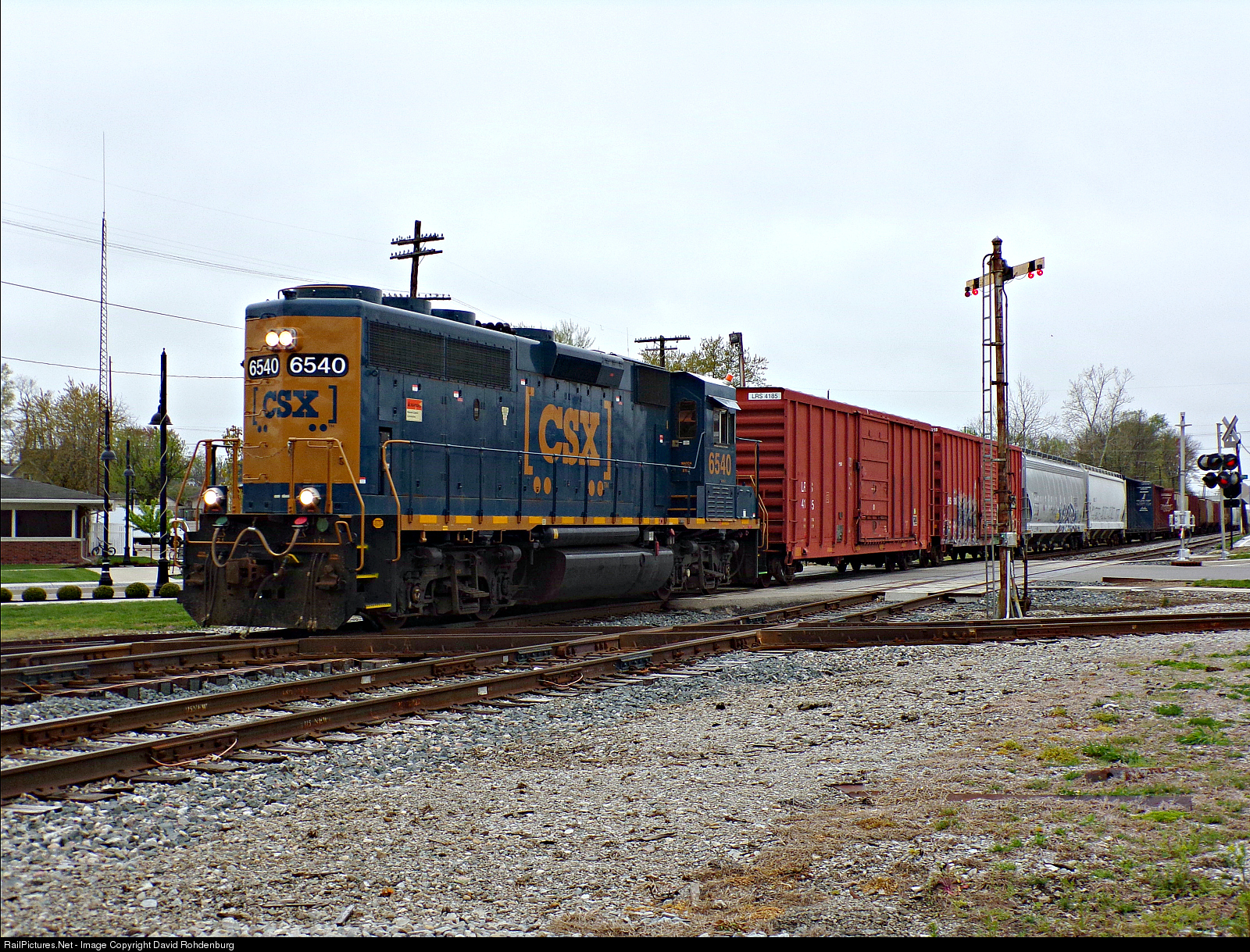 On a cloudy & rainy Good Friday 2019, the CSX Indiana Subdivision Local, J780-19, clatters across the Madison Railroad diamond in North Vernon, Indiana, passing the classic B&O-style Tilting Target Signal that still protects the diamond. J780 is heading east to nearby Butlerville to drop cars for either Q574 or Q576 to pickup later. The North Vernon Tilt Signal is the last surviving B&O-style Tilting Target Signal still active on the CSX System.