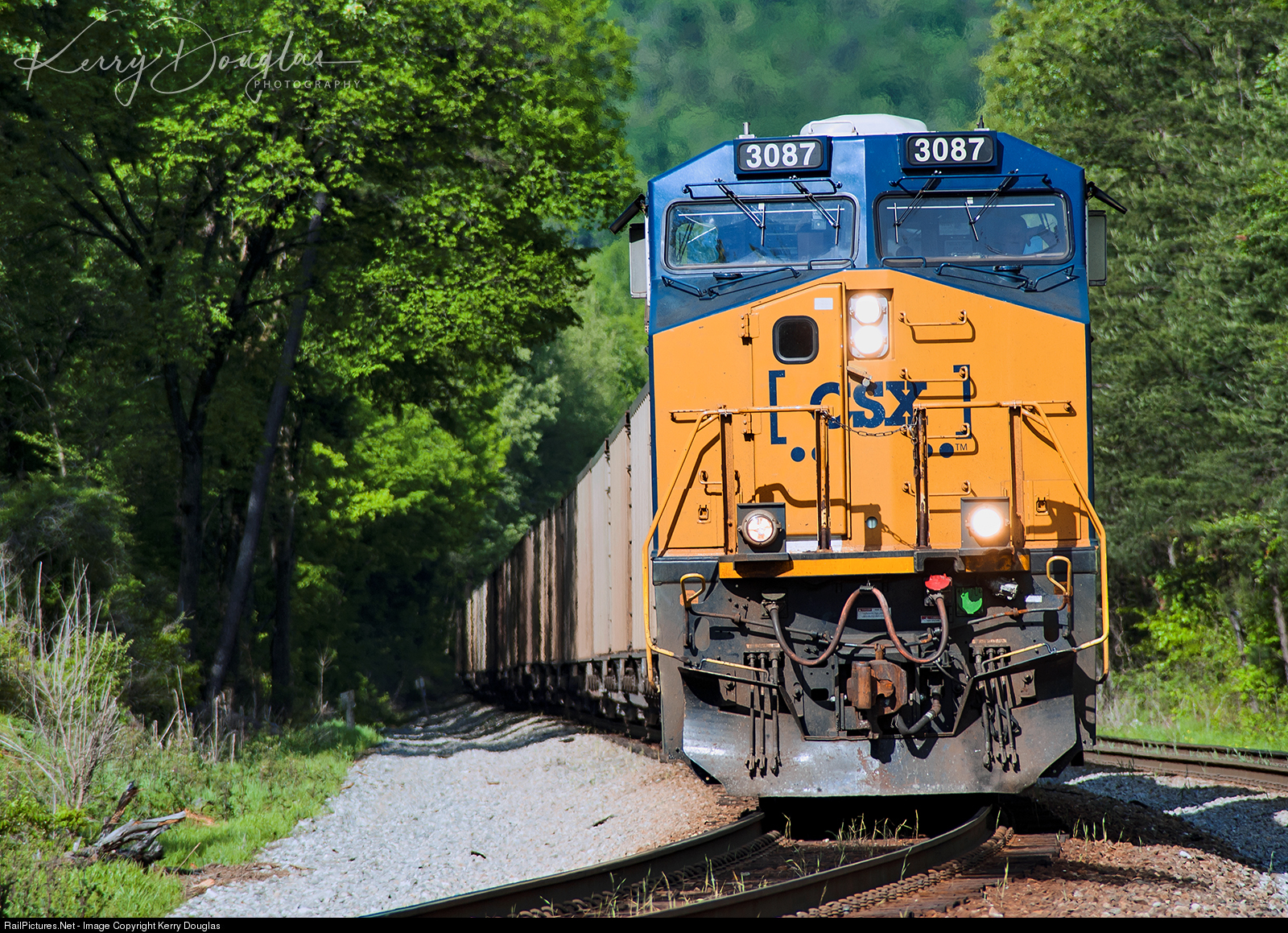 The empty Georgia Power coal bucket CSX E302-21 (Stilesboro,GA-Evansville,IN/EWVR) slowly lean into the curve on the main 2 track at Wildwood, GA (MP J-143.4 Wildwood) on this warm spring evening. The empty coal bucket is about 2 and half miles from the crest of mountain, ans is managing to stay at the slow rate of speed without any issues. Seeing these empties, and loaded coal bucket remind us of a piece of history that disappear in this small rugged Cumberland Plateau country. Coal was one of the few raw materials that was dug out of the mountain and was shipped all over the country a century ago. Coal that was dug out of the Plateau, and was trucked down where it would be loaded by train in various places between Wildwood, GA, and Whiteside, TN. This location in fact had a third track next to the main 1 track (Not seen in photo), where hoppers were lined up and was loaded through a conveyor belt system via of trucks. Over time mining in the Plateau started to dry up, but it wasn't until Dec 8, 1981 where the fate of mining in this region came to an end. No. 21 Mine explosion near Whitwell, TN which is still talk about to this day, killed 13 coal miner due to failing to effectively enforce regulations that banned smoking materials in mines, which resulted in a major lawsuit by 1983 driving the Tennessee Consolidated Coal Company into bankruptcy, and by 1997 mining in this area cease to exist.