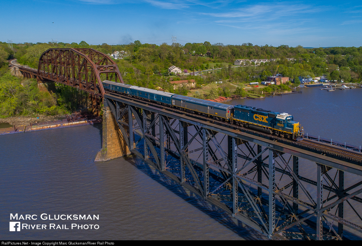 B&O on the B&O. CSX 6025 (GP40-2) began life with the Baltimore and Ohio Railroad in 9/1972. On Wednesday, April 24, 2019, it was an appropriate leader for the CSX Geometry Train as it covered former B&O Railroad territory to check the rails on the way to Baltimore, MD. Seen here leaving Perryville, MD as it is about to cross the Susquehanna River, it is now three cars long, including the new car “Florence”.
