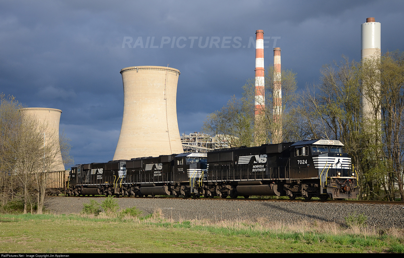 A change in NS assigned power from SD60Is to SD60Es has occurred on coal trains to Montour Power Plant. The first empty train with all SD60E power, NS 7024, 7033, & 7015, departs Montour Power Plant. Previously assigned SD60I power has soldiered on pulling these trains since late winter 2007.