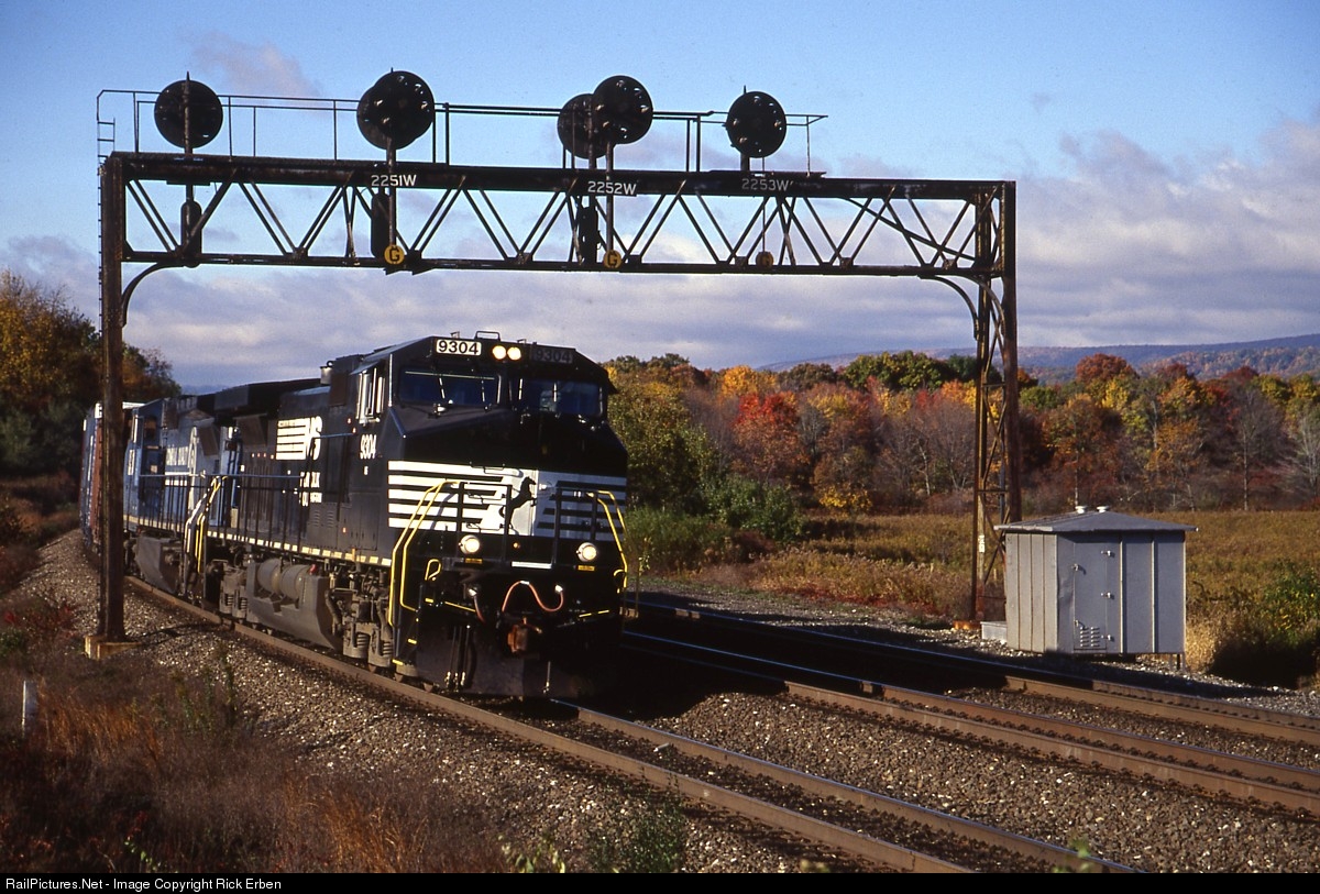 Timothy Pavlic's thoroughly distressing image of the removal of the signal bridge at Tipton, PA (#695467) prompted me to view some of my images from several years back in requiem. The autumn of 1999 was spectacular and here the 9304 comes east in early morning sunshine with auto parts and frames. Even then, the PRR-era signal bridges had been removed in many locations; so perhaps the only startling thing is that some of them lasted as long as they did (Mapleton, Barre, Birmingham and Tipton among them east of Altoona). They spoke of vast volumes of traffic, of an urgency to the proceedings, of strong corporate identity and were an emblem of the heyday of railroading. Yes, it's regrettable to see them go. Ektachrome.