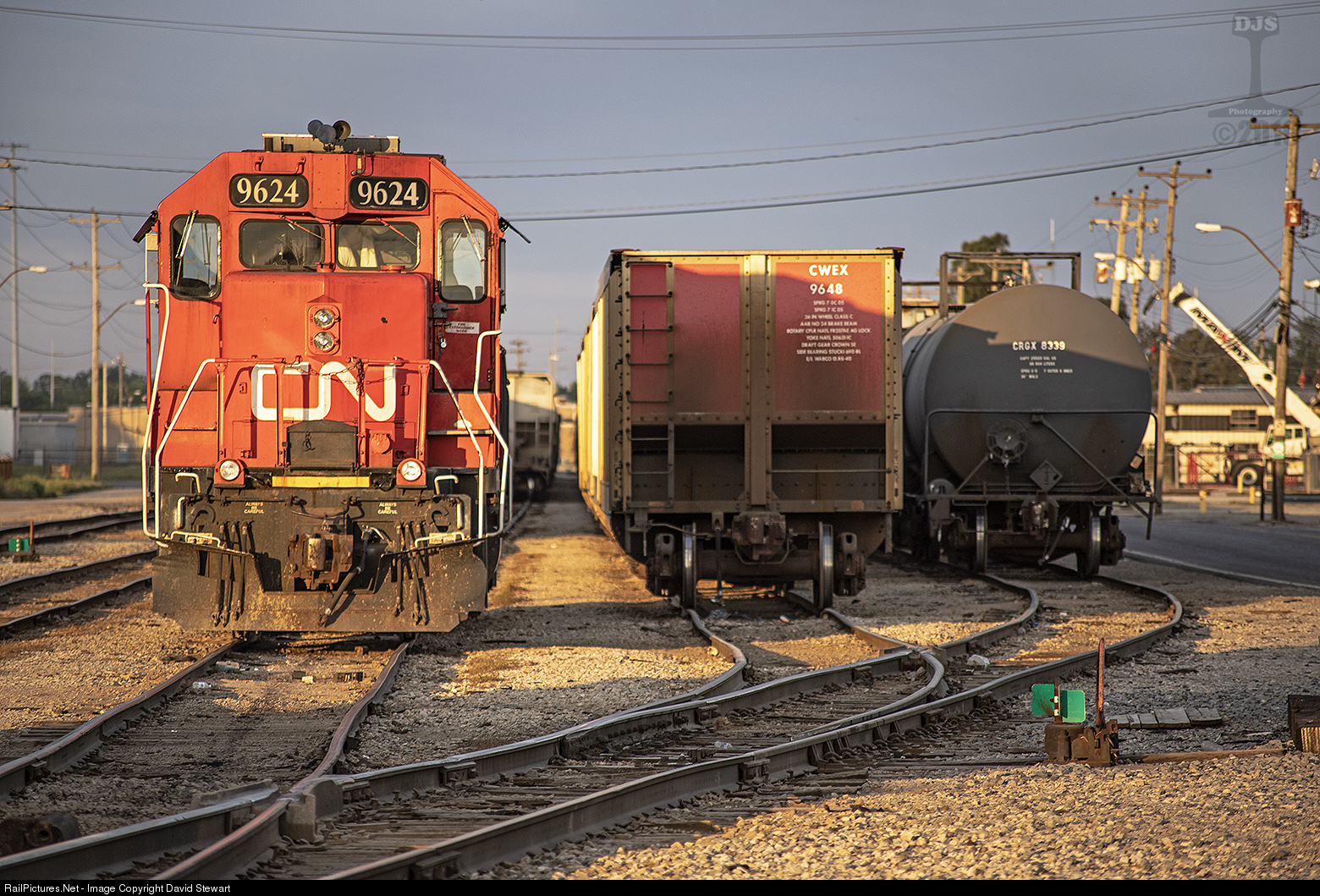 | CN/IC GP38-2 9624 stands in the early morning light on President's Island at Memphis, Tennessee along side assorted cars for local industries. The coal porters are destined for Progress Rail where they will be reduced to pieces for future recycling. April 28, 2019 |