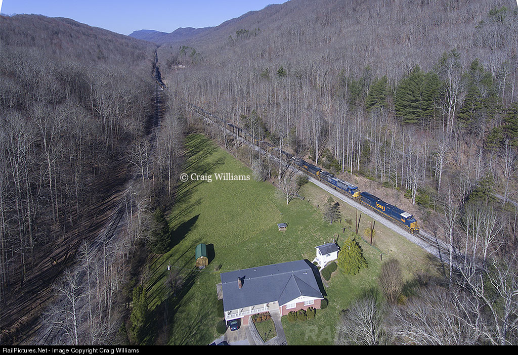 Buried deep in the Cumberland Mountains in the western tip of Virginia is the Hagan Switchback. This area is a remote section of the CSXT Cumberland Valley Sub between Loyall and Big Stone Gap. Here trains have to maneuver from a north-south main to an east-west main via a switchback. This morning we have a 110 car Terrell coal train is now heading east all done with the switchback maneuver. Manned helpers on the rear end had to help this train thru the switchback. They made a cut on the train and doubled towards a track to allow them to get over the south switchback switch. Once they helpers were pointed towards the connection track, the train is put back together and then move west thru the switchback (track on the left). Both switches are radio remote controlled in the switchbacks, and the train gained 102 feet with this move. The move lasted only about 30 minutes from arriving south, to heading east. Pretty interesting move for a class 1 coal train in 2019! As you can see the air shots help see the move better cause alot of this area is in a Forrest.