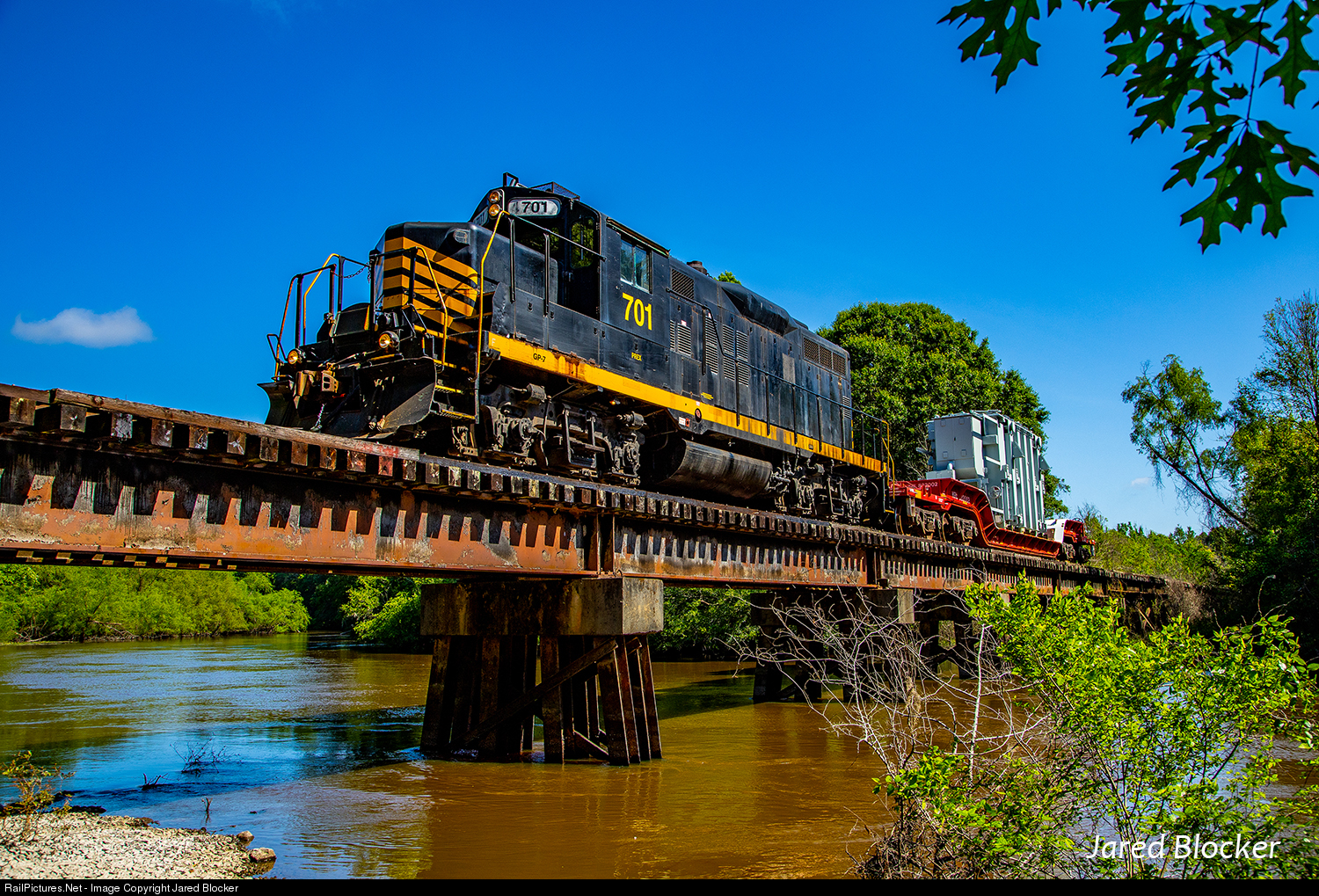 An ultra rare high/wide move on the Georgia Southern Railway takes it over the swollen Ogeechee River near Dover. The transformer load is for Georgia Power in Statesboro.
