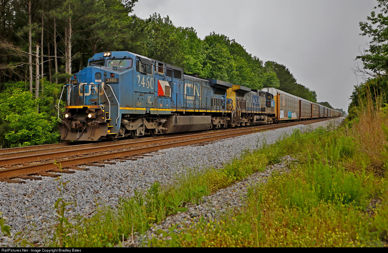 IC C40-8W "Blue Devil" #2460 makes a rare appearance leading southboud CSX Train A735. They are seen here stopped at the South End of Coosa Pines in Grasmere, AL, for a meet with a northbound before proceeding on to Talladega, AL.