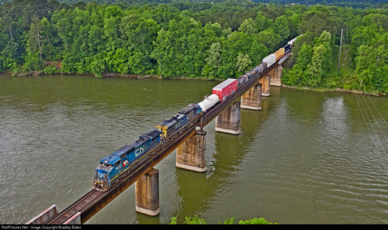 IC C40-8W "Blue Devil" #2460 makes a rare appearance leading CSX Train A735 south as they cross the Coosa River at Grasmere, AL, bound for Talladega, AL.