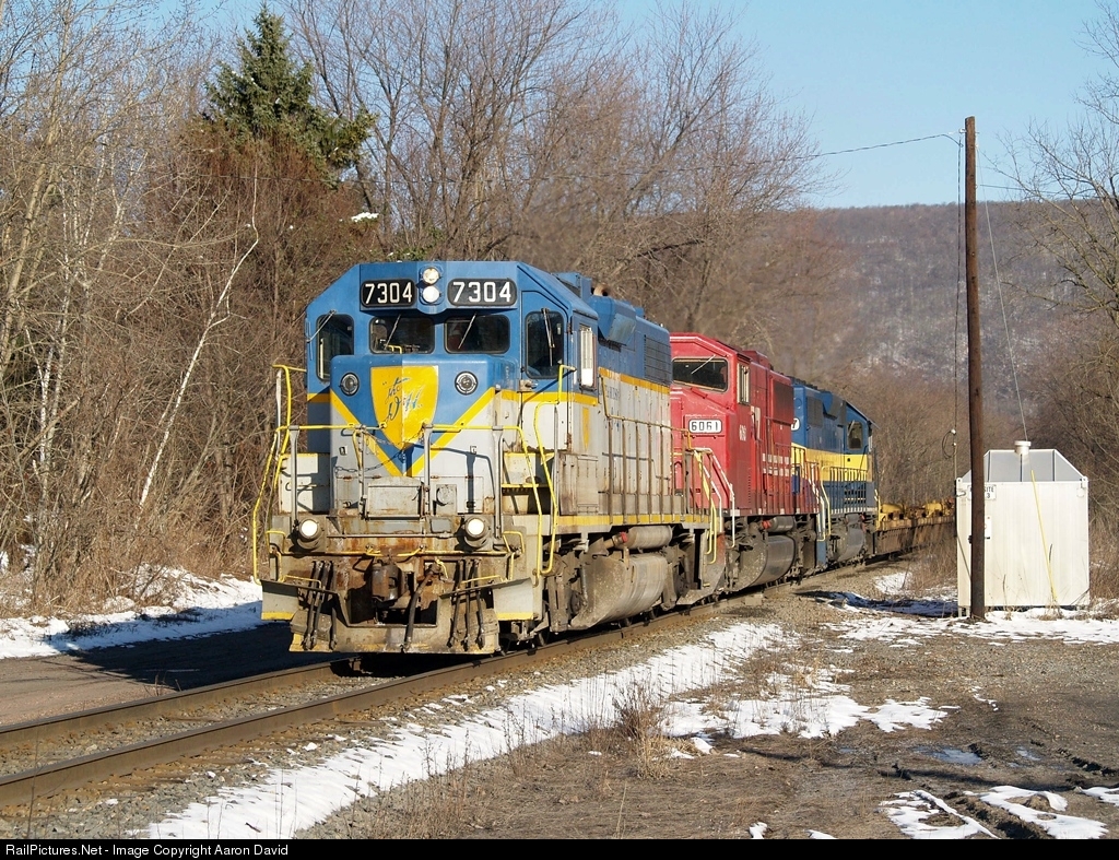 With a lashup never to be repeated ever again, CP 159 charges north through Nanticoke, PA on a cold March morning. The D&H 7304 is still in D&H paint, but has been reassigned to operations on parts of the CP system in Canada. The ICE SD40-2 has been sold and the SOO SD60M has been repainted into CP colors.