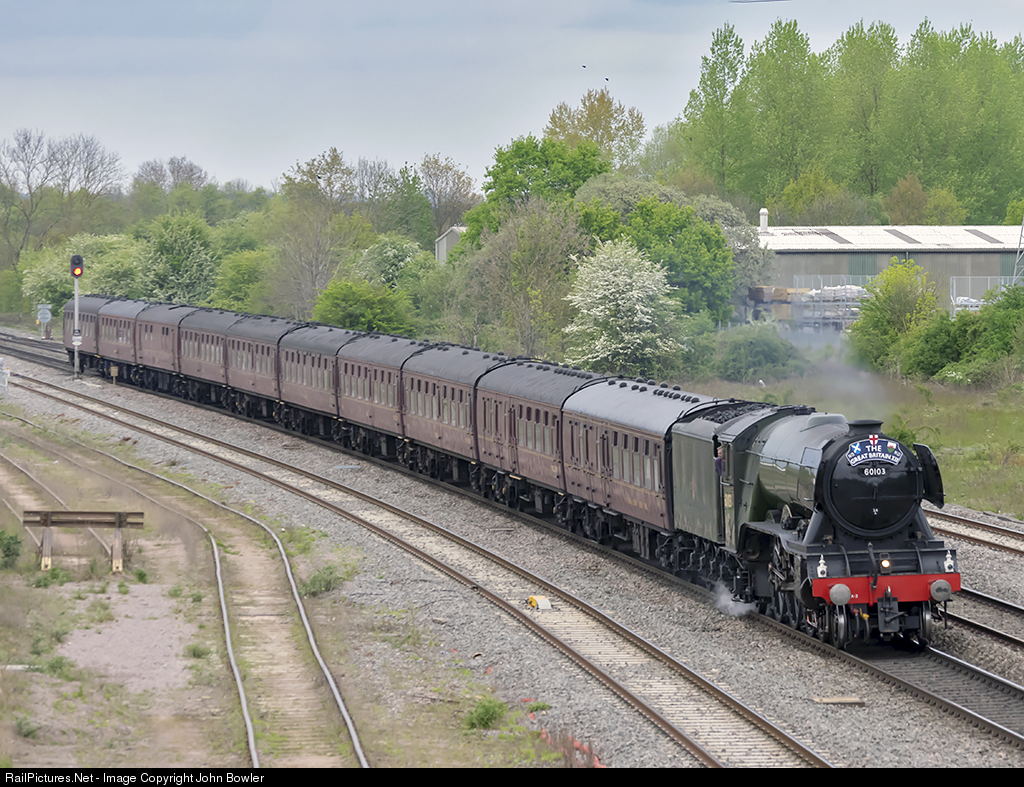 | LNER 60103 'Flying Scotsman' approaches Banbury, running 143 minutes late, with the 1Z31 'Great Britain X11' 1004 York - London Paddington having been heavily delayed south of Derby due mainly to trespassers on the line. |