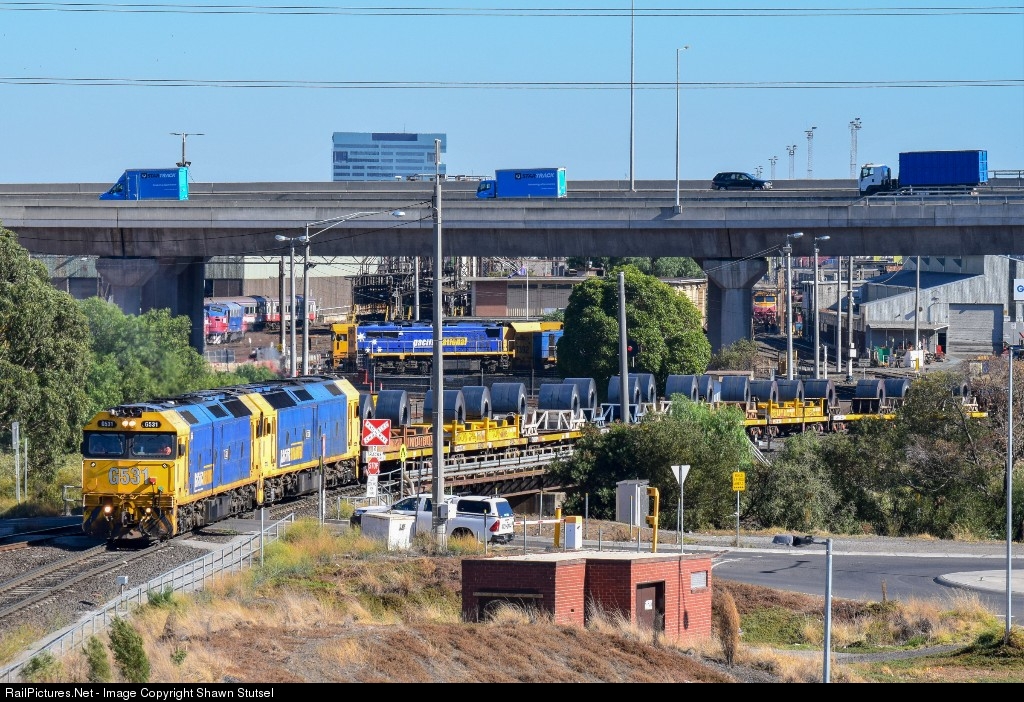 | Pacific National's G531 and G536 rolls out of South Dynon, Melbourne with 9553, Steel Service bound for Hastings...
