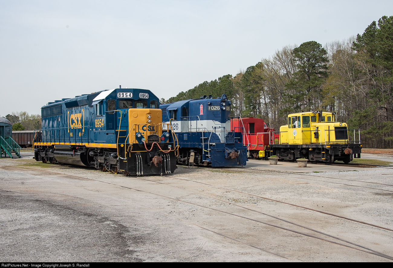 CSX 8954: The museum's newest & most powerful locomotive. Built by the Electro-Motive Division of GM in August of 1974, this SD45-2 was ordered by the Seaboard Coast Line as their 2049 & it's worth noting that not only is it the first SD45-2 to be set aside for preservation, it still retains the original 20 cylinder 645E3 prime mover.