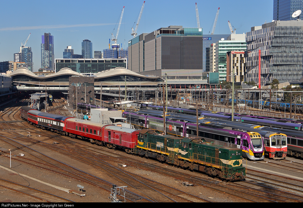 Heritage loco's H5-H3 depart Southern Cross Station with a charter train to Seymour.