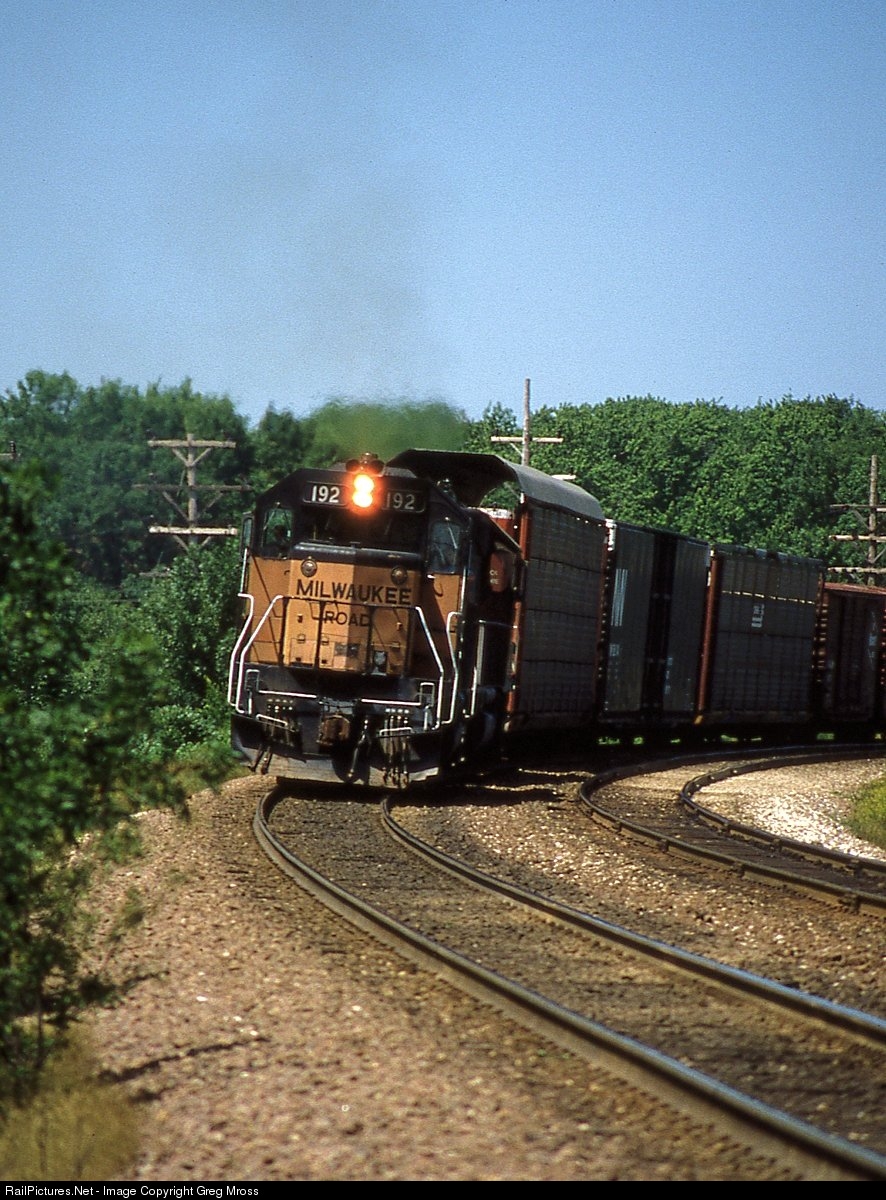 MILW 192 is about to cross Waterford Avenue in Milwaukee, WI as it begins its' assault of Lake Hill in July of 1984. The grade here was deceptively steep, as freights would typically be on their knees when they crested the grade about 2 miles south of this location.