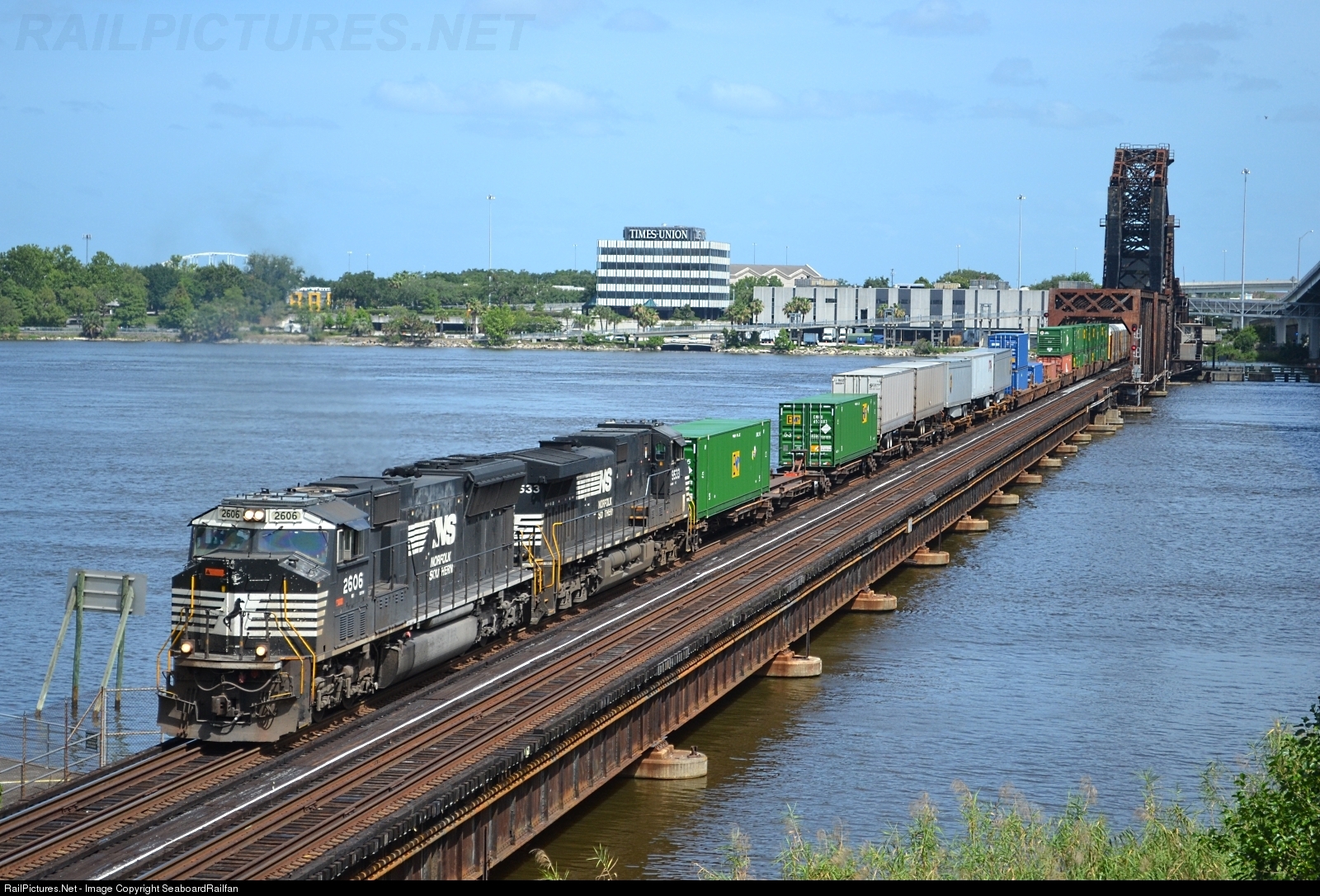 NS 2606 brings an intermodal train across the St. Johns River bound for FEC's Bowden yard