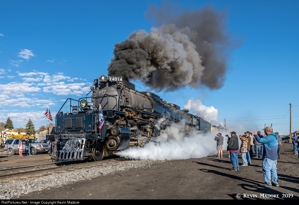 Creating a spectacle! The cell phones come out as UP 4014 departs the yard in Evanston, WY in spectacular fashion, headed for Rock Springs, Rawlins, Laramie and eventually, Cheyenne.