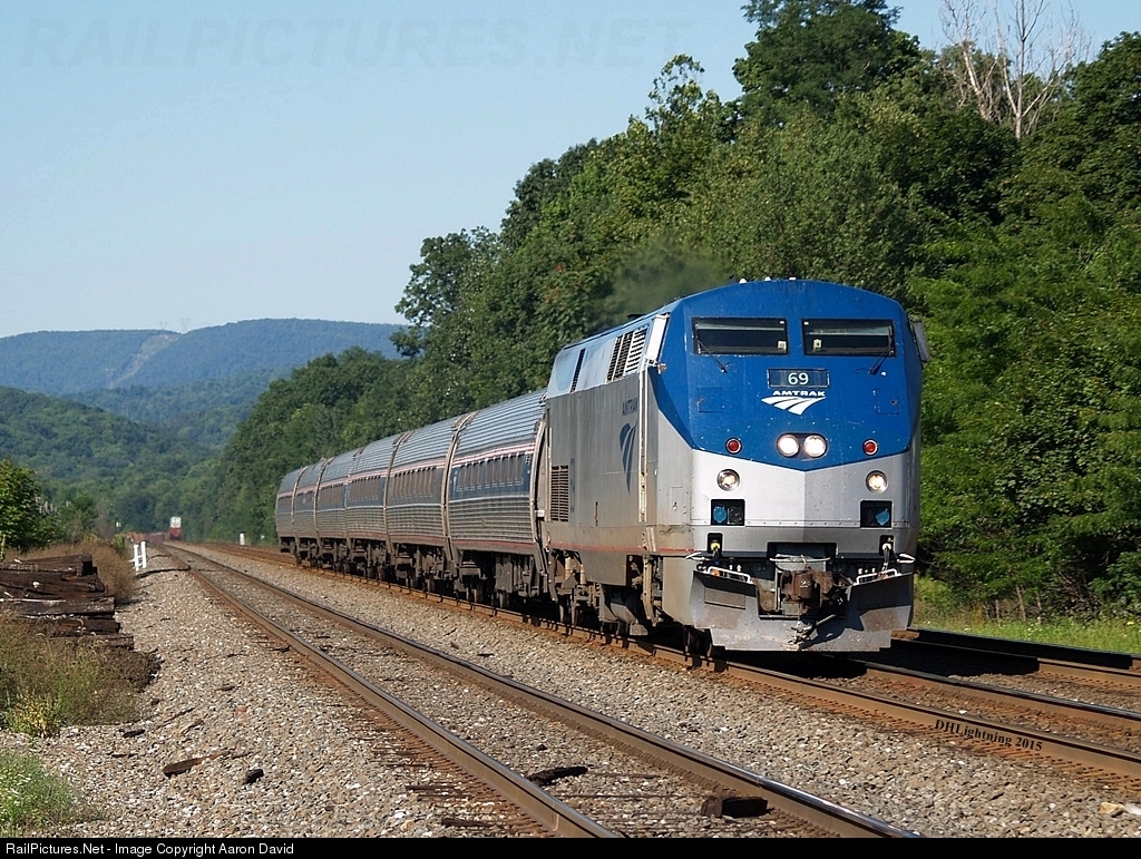| Amtrak 04T blasts east through Tipton, PA on the NS Pittsburgh Line toward Harrisburg and then Philadelphia, PA. |