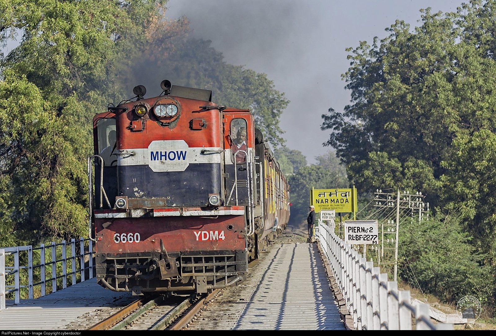 | The Vanishing Guage on Indian Railways. The once ubiquitous metre gauge is now a few 100 kilometres across the entire network. Here a Akola bound passenger approaches the Narmada river bridge just north of the town of Omkareshwar. The service currently is now curtailed between Mhow and Sanawad with the Gauge conversion in progress. Such trains and sights sadly now will remain a part of the Rail lover memory and present in the form of a few videos and photographs. |