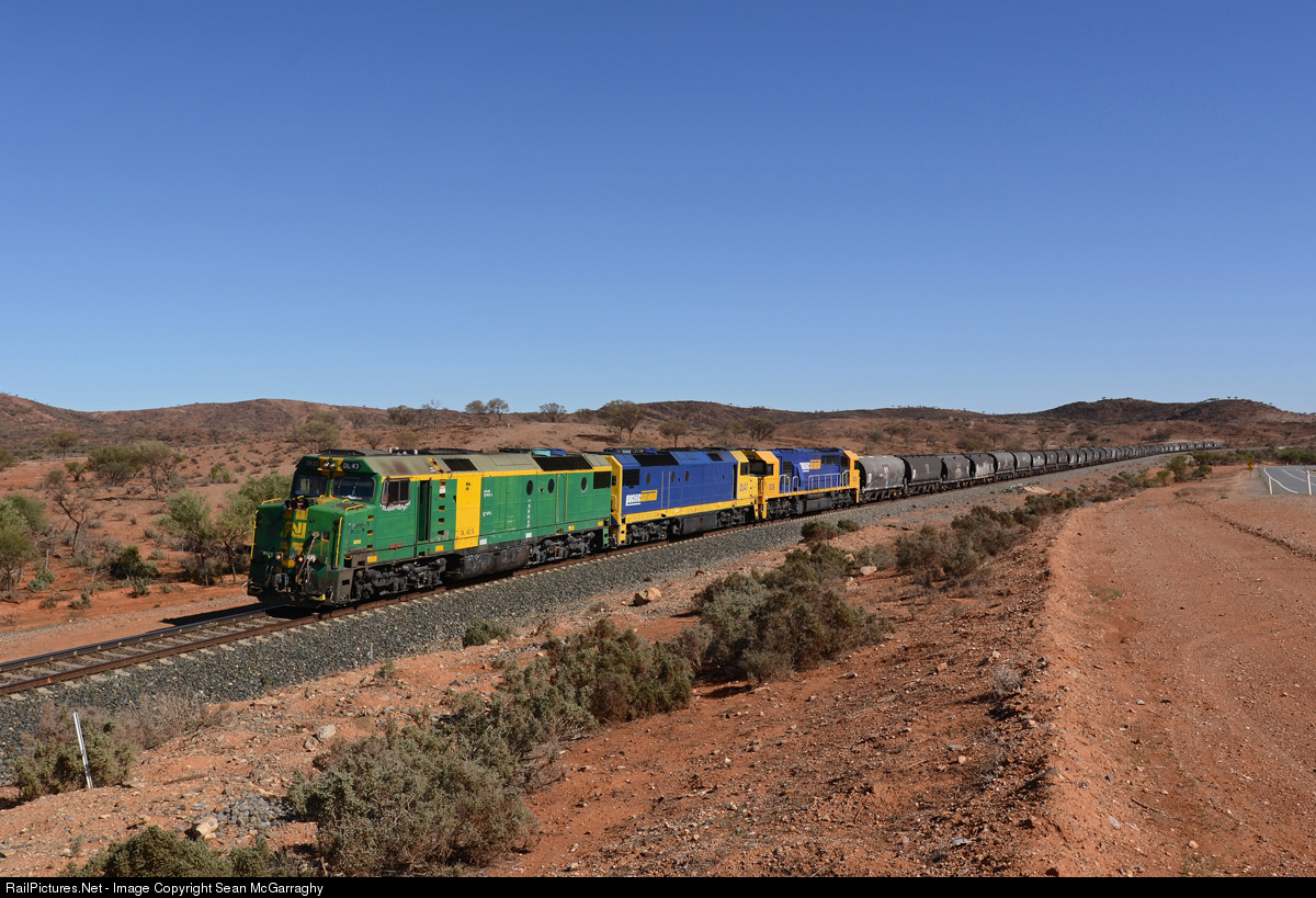 Another Pacific National drought relief grain train is seen winding through Mount Gipps, near Broken Hill. Led by DL43, DL47 & 8236, 5AG6 originated from Bowmans, South Australia and is bound for Parkes, New South Wales to dump its load of grain which will then be distributed to drought ridden farmers for stock feed.