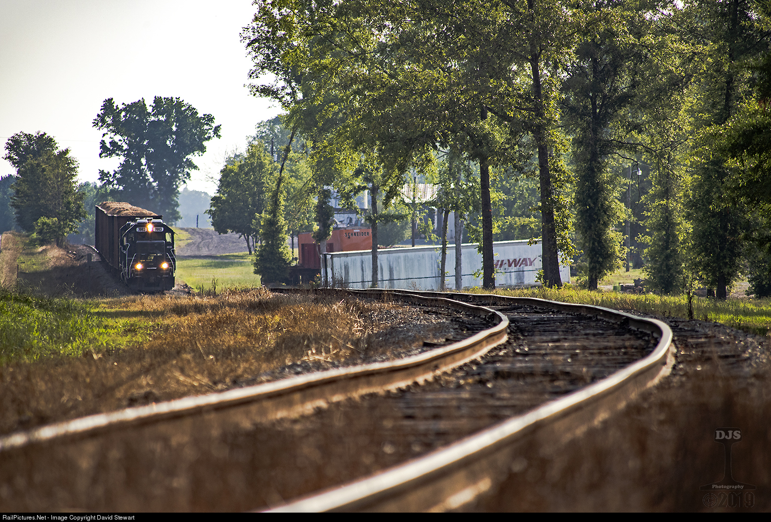 Rolling into Shady Dale, Georgia is CaterParrott Railnet's train No15, the southbound F Line local from Madison on Memorial Day 2019.