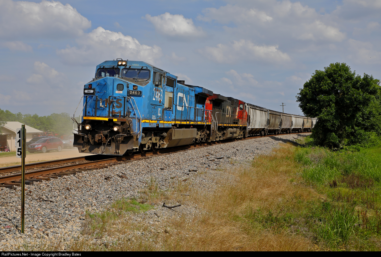| Canadian National Freight Train A489 heads North through Wakeland, MS, with IC C40-8W #2463 on the point still in its former LMS Blue Paint scheme |