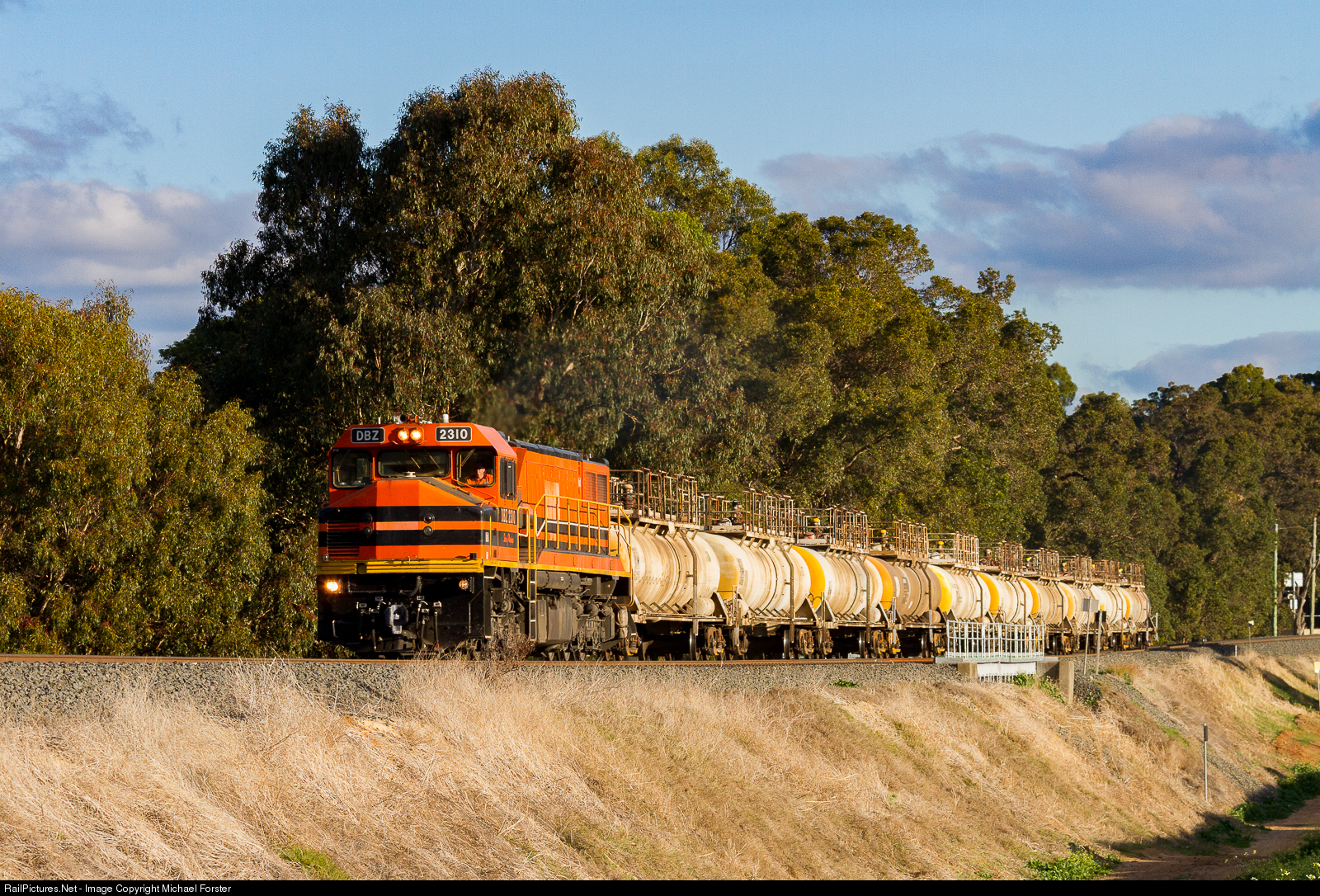 | A rare visitor to the mainline these days, with only 3 DB Class in active service, and 2 of these based in Albany. A Picton based DB is a treat. 2310 races out of Burekup with a loaded caustic soda train bound for Wagerup. |
