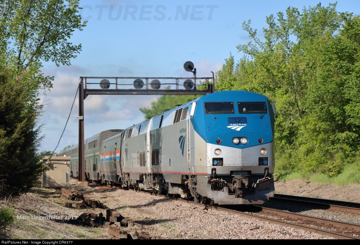 RailPictures.Net Photo: AMTK 12 Amtrak GE P42DC at Marceline, Missouri by CR6377