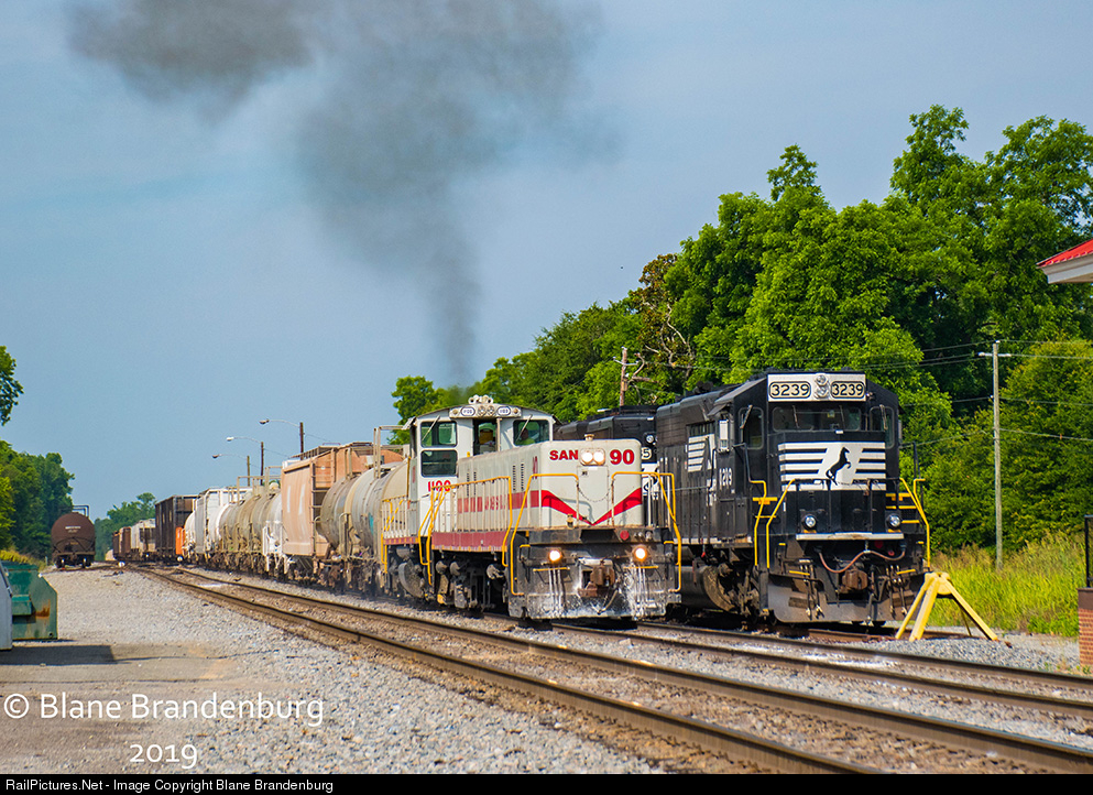 | Sandersville NS interchange job pulls high through Tennile as they switch up their outbound interchange. Slug #90 was head out and was originally built as CRIP U25B #210 |