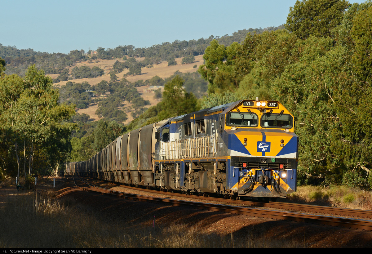 | VL357 & VL361 leased to CBH Group are hauling 5S56 loaded Kellerberrin grain through Brigadoon with 60 hoppers full of canola bound for CBH Kwinana. |