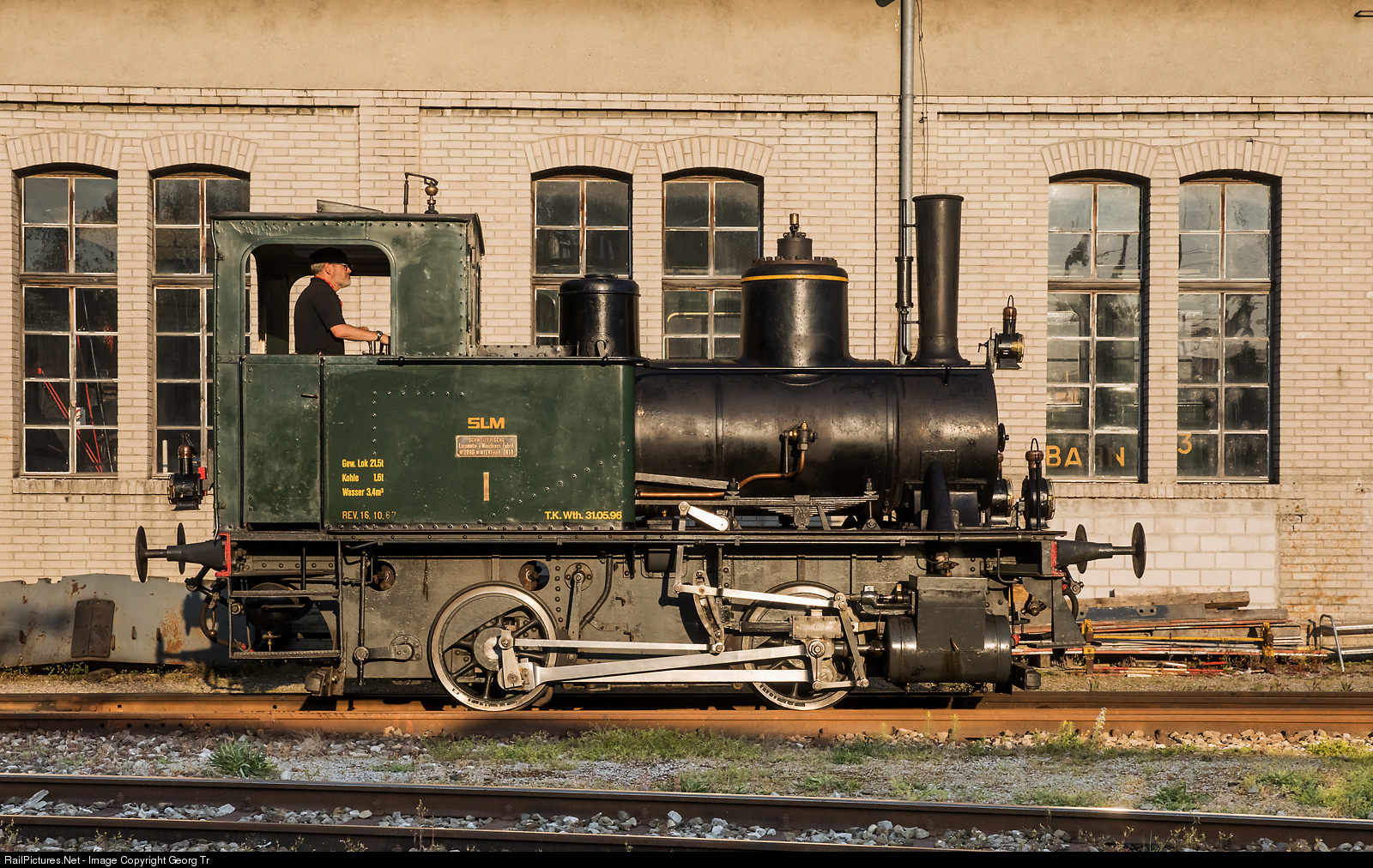 The privately owned little shunting locomotive E 2/2 # 1, former SLM Works locomotive and built in 1910, weighs 21,5 ton only. It is based at the Bahnpark Brugg (AG) and is regularly used during the open doors days for the shuttle trains between Brugg station and the Bahnpark area.