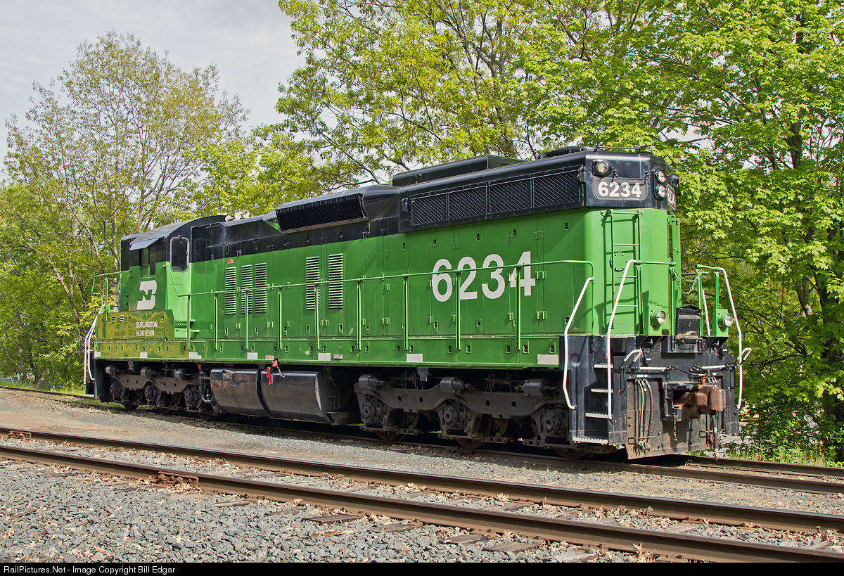 BN 6234, a late phase SD9, is shown parked at Osceola where it is available for tourist train service. The Minnesota Transportation Museum unit dates back to Burlingtion subsidiary Colorado & Southern and would have been among the first units delivered to the system in Chinese Red, breaking from their previous black & gray scheme. this scheme reflects the traditional BN scheme, and most units did not have white striping on the rear.