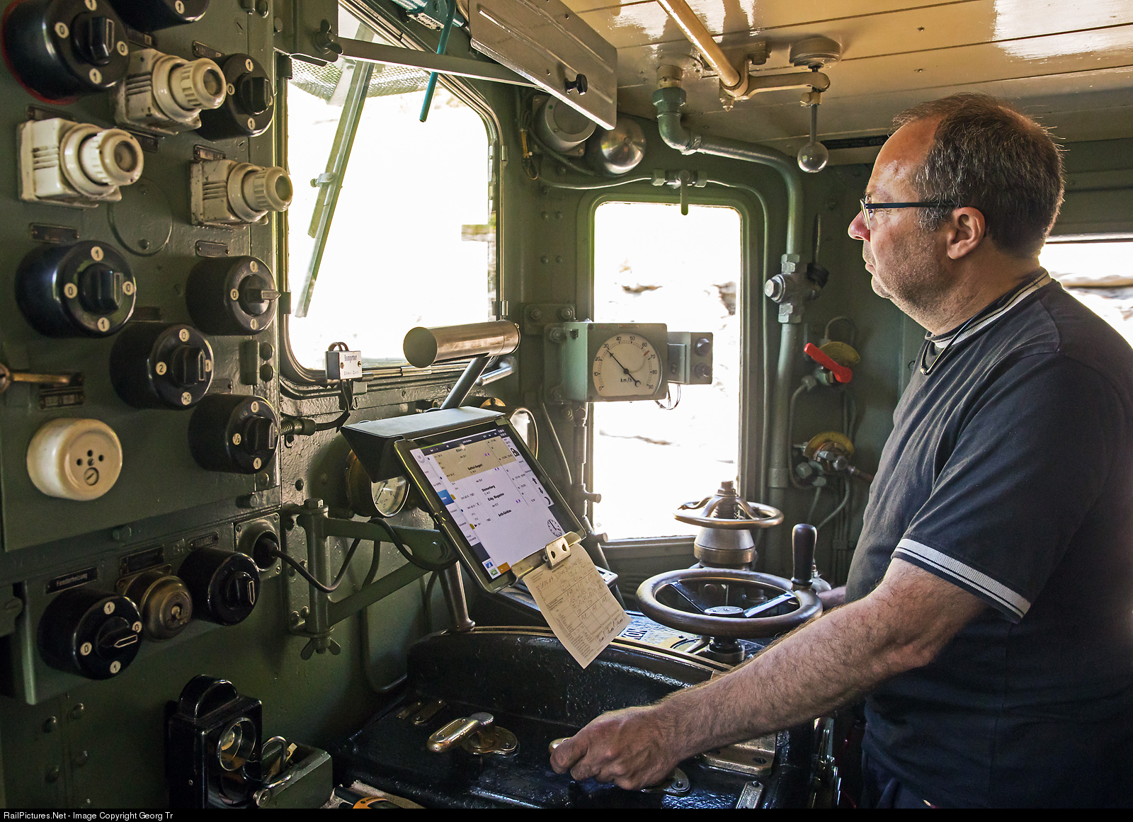 | The engineer on the iconic "Crododile" Ce 6/8 III # 14305 of SBB Historic is running the train with 3 passenger cars on the grade of up to 5.0 % of the Südostbahn line down from Rothenthurm towards Sattel-Aegeri and Arth Goldau, the maximum velocity according to the train weight and brake power is 30 km/h. The crocodile has an electric brake, but strong enough for maximum of the locomotive weight on this heavy grade, so the air brake is needed again and again. The 1810 kW locomotive was built in 1925 by SLM and MFO and is based at Olten.
