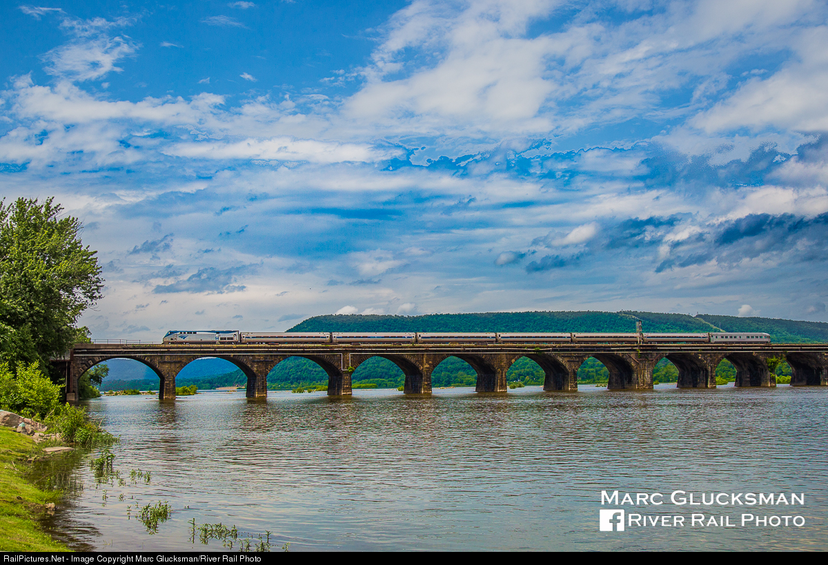 | On June 23, 2017, the Webb Rail LLC - WEBX former New York Central "Babbling Brook" held the markers on the Amtrak Pennsylvanian (Train 43/07T). Seen here from the wonderful view available at the Bridgeview Bed & Breakfast crossing the former Pennsylvania Railroad Rockville Bridge, it presented an interesting photo op for the guests. |