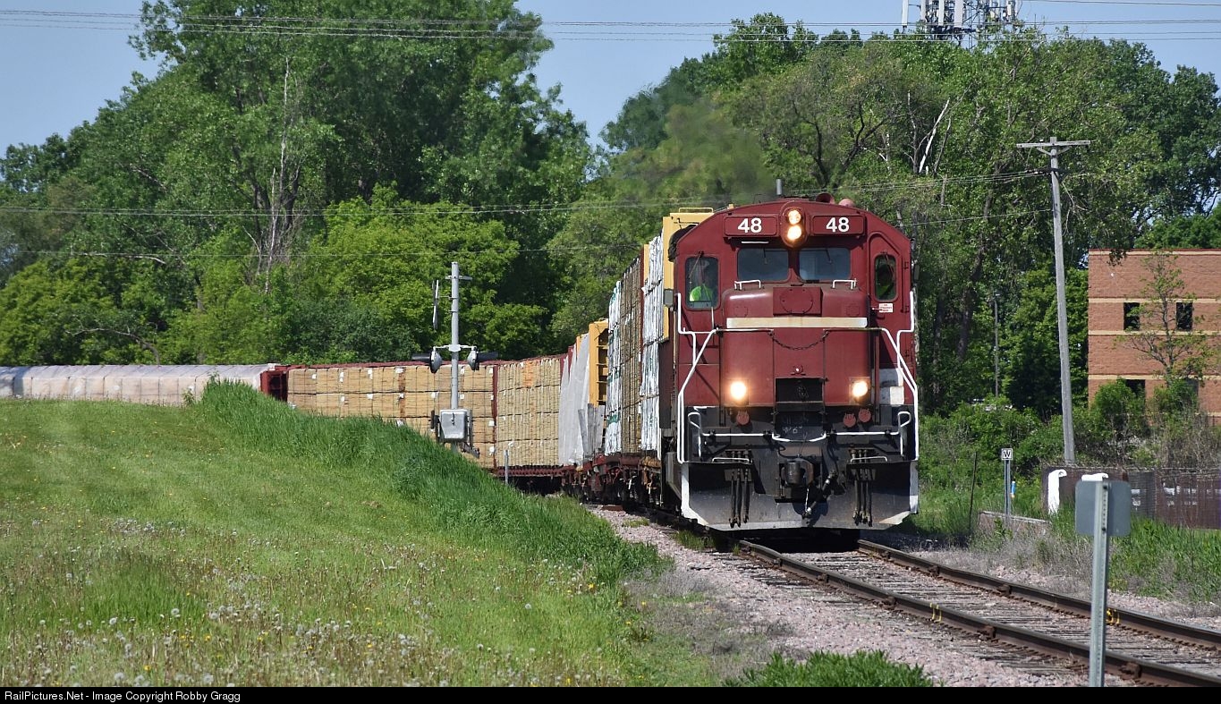 MNNR 48 leads the Hugo job east out of Saint Paul.
