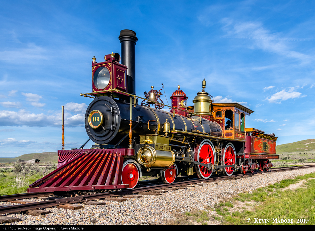 UP 119: An unlikely celebrity. When looking at photos of the Last Spike Ceremony on the Transcontinental Railroad, we see lots of distinguished looking men clad in formal attire and two ornately painted steam locomotives. Given that gold and silver spikes were being "driven" with a silver spike maul, I think that most folks who take the time to think about it probably assume that the two locomotives were specially built, or at least specially prepared for the occasion.....perhaps the finest engines either railroad could bring. In actuality, none of that was the case. The honest truth is that neither the Union Pacific's 119 nor the Central Pacific's Jupiter were specifically picked for the ceremony and in fact, both railroad intended for other locomotives to be there. In the case of the Union Pacific, the special train carrying UP Vice President, Dr. Thomas Durant ended up being stopped by bridge problems east of Promontory. It seems that a swollen river had washed out some of the supports to the Devil's Gate Bridge and the engineer on the so-called "Durant Special" refused to take his engine across the bridge. Instead, he gently nudged a cut of passenger cars across so the train made it to the other side, but UP had to dispatch another engine from Ogden, to pick up the cars and bring Durant to Promontory. The 119 happened to be that engine and she ended up being "immortalized" in the famous photos by Russell and Hart.