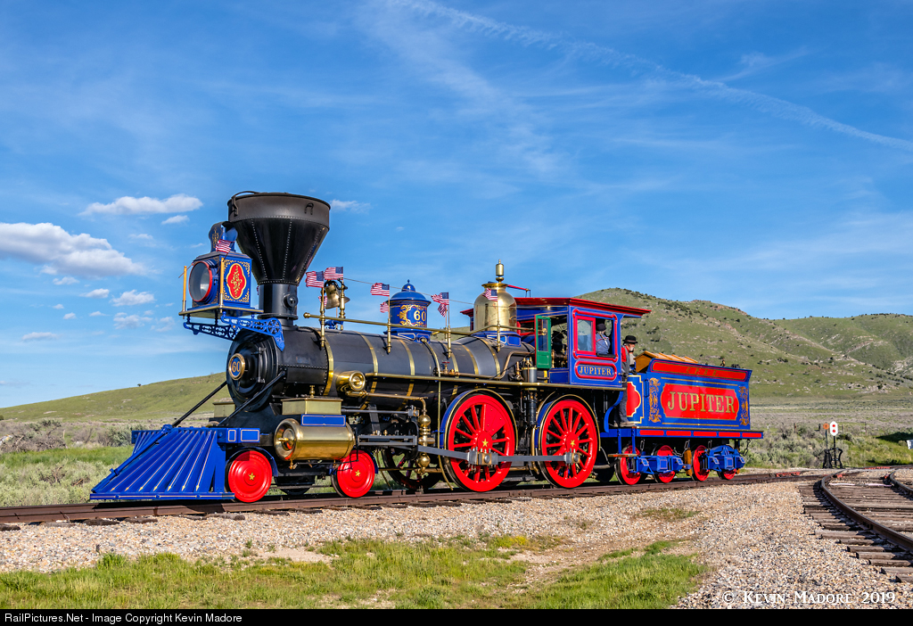 The locomotive you see in this photo is not the original Jupiter. Like so many great American artifacts, nobody really thought much about saving her until she had been unceremoniously scrapped in 1909. Fast-forward to 1975 when the National Park Service had a dilemma. They owned the the historic location of the Last Spike Ceremony, but had no locomotives to facilitate historic re-enactments. In past years, they had borrowed former V&T Engines "Dayton and "Inyo" from movie companies, as stand-ins, but those engines were now the property of the Nevada State Railroad Museum and weren't going anywhere. Instead, the Park Service commissioned a pair of replicas to a firm known as O'Connor Engineering Laboratories, of Costa Mesa, CA. Fortunately, Company President Chadwell O'Connor was a railfan himself, so the construction of these replicas became a labor of love. He engaged the services of Railroad Historian Gerald Best and Disney Animator Ward Kimball to help with the project. No plans or drawings existed for the two engines. O'Connor and team literally had to re-engineer the two locomotives from the historic photos of Russell, Hart and others. It was painstaking work, but no detail was spared. Interestingly, one of the most difficult tasks was figuring out how to paint the two engines, since all of the existing photos were in black and white.