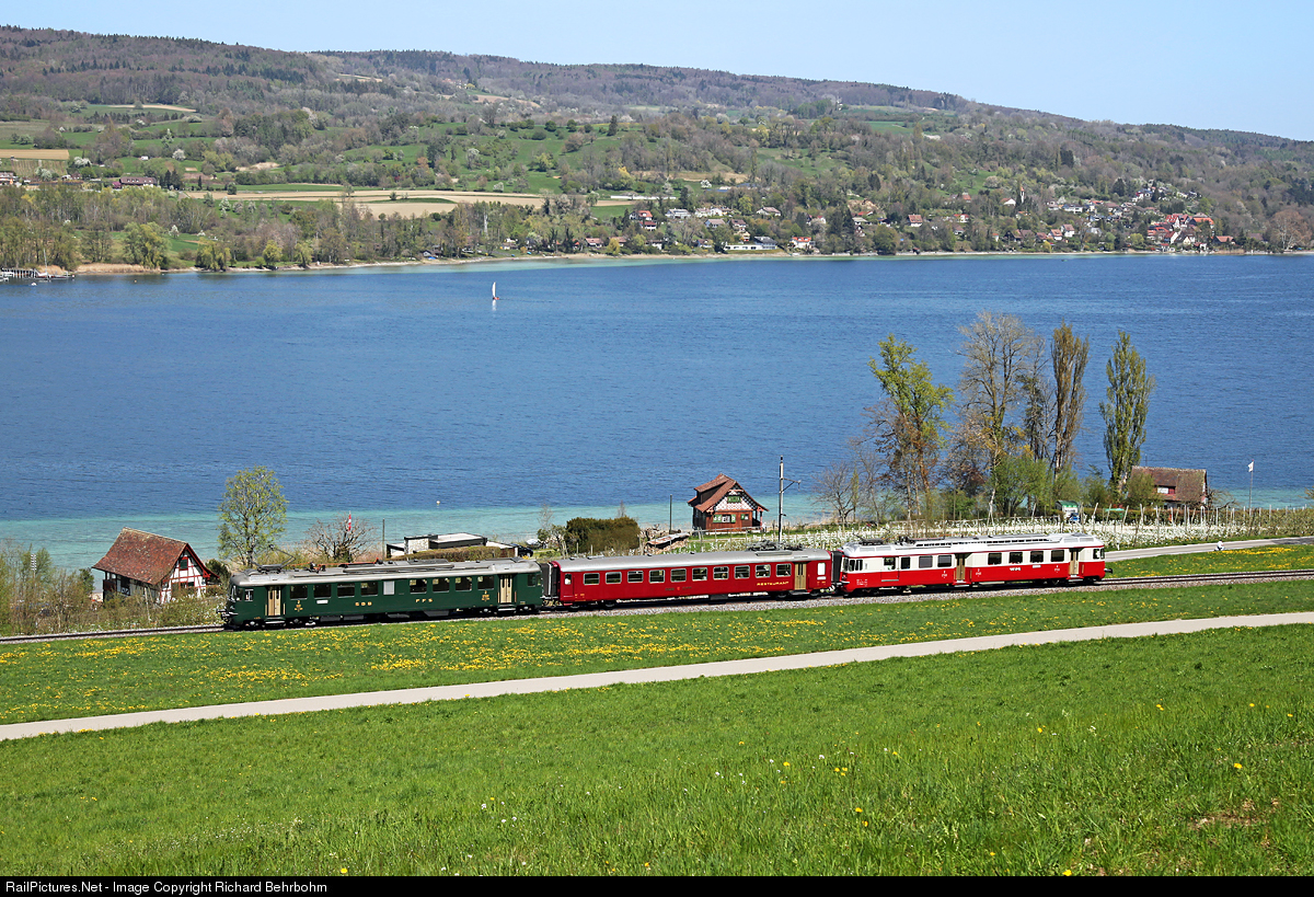| Private charter tour with a dining car of SBB Historic. Railcar BDe 4/4 2 comes from the former Wohlen-Meisterschwanden-Railway. The green RBe 4/4 was built in 1959 and used by SBB until 2007. Both railcars are operated today by association Verein Depot und Schienenfahrzeuge Koblenz. |