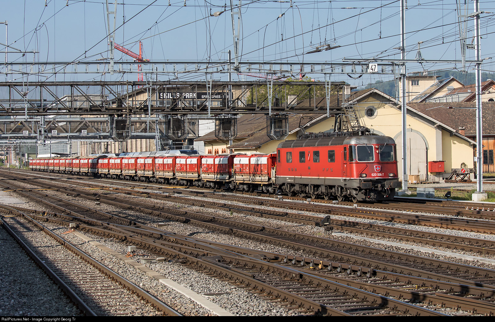 | Re 620 # 006 (Re 6/6 # 11606) "Turgi" is pulling the HOLCIM gravel and sand train 67891 from Hüntwangen-Wil via Winterthur-Romanshorn VL to St.Margrethen, entering Winterthur. |