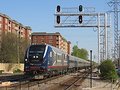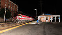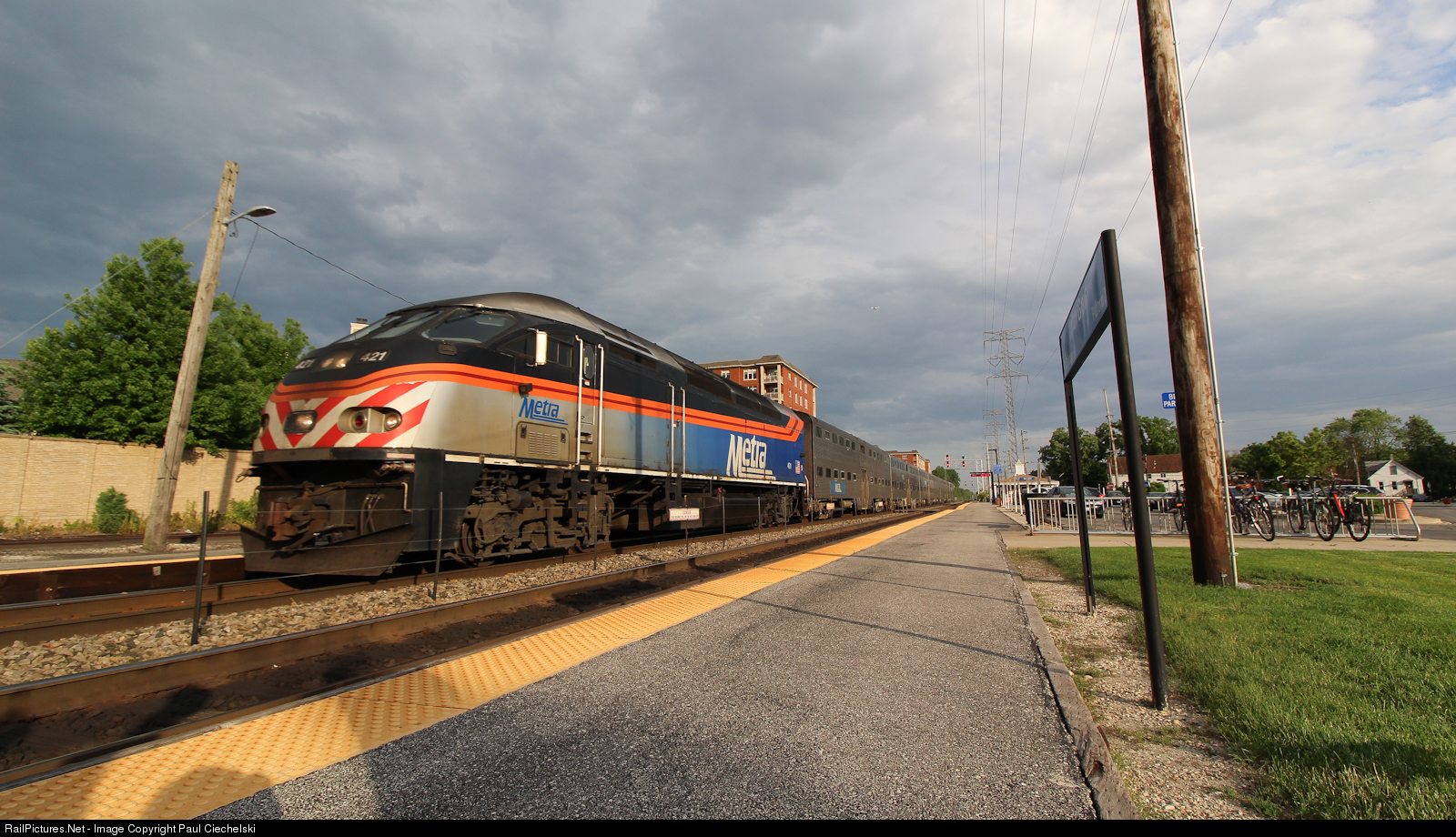 METX 421 arrives at the Morton Grove Metra station during rush hour, packed with commuters. This is one of the last MP36PHs that have -3S specifications.